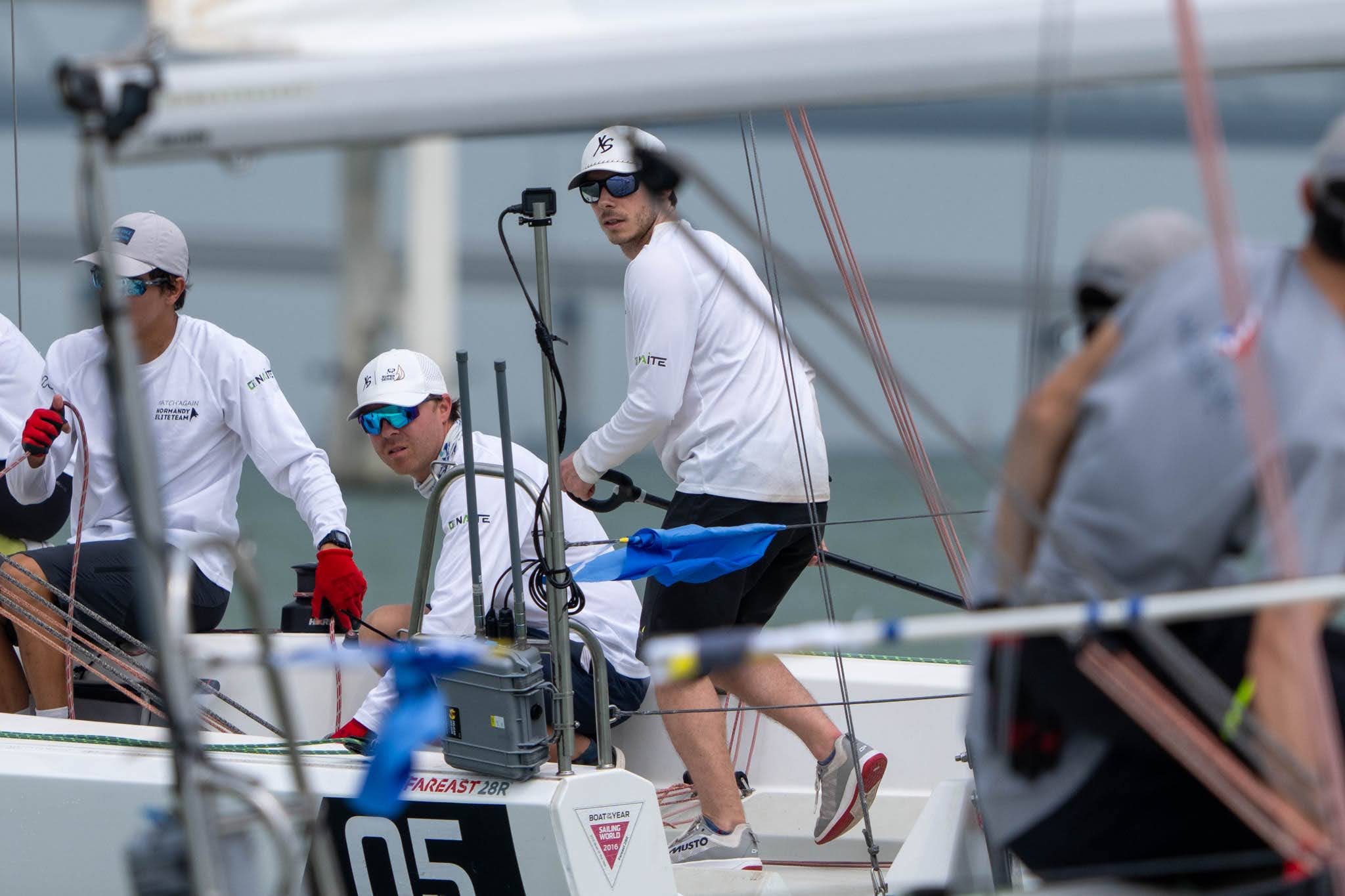 In changing and light wind conditions, all teams engaged in fierce battles for the coveted spots in the last eight. France’s Aurélien Pierroz secured the top spot in the qualifying round with nine wins and two losses to earn a place in the quarter-finals. Fellow quarter-finalists are Oscar Engström (Sweden), Jeppe Borch (Denmark), Ian Garreta (France), Nick Egnot-Johnson (New Zealand), Cole Tapper (Australia), Johnie Berntsson (Sweden), and Christian Prendergast (USA).