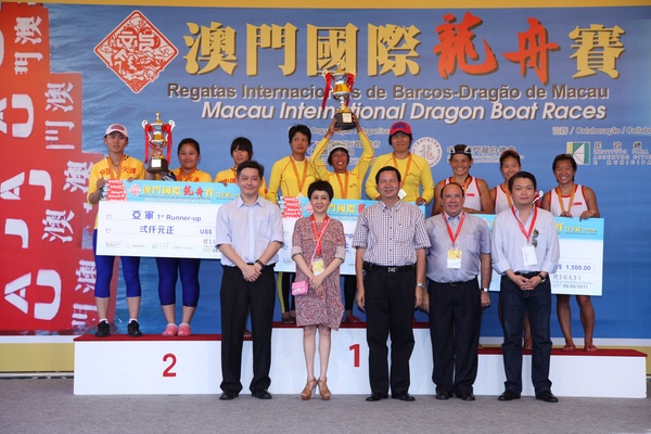 Na categoria de senhoras, a prova foi da mesma forma tão espectacular como na categoria de open. A China Nanhai Jiujiang venceu com 2:05.302, ficando em 2º e 3º a China Tianjin e a Equipa Nacional de Singapura. Foram classificadas do 4º ao 6º lugar as seguintes equipas: a Selecção de Macau, a Galaxy Pearl e a Hong Kong Stormy Dragon.