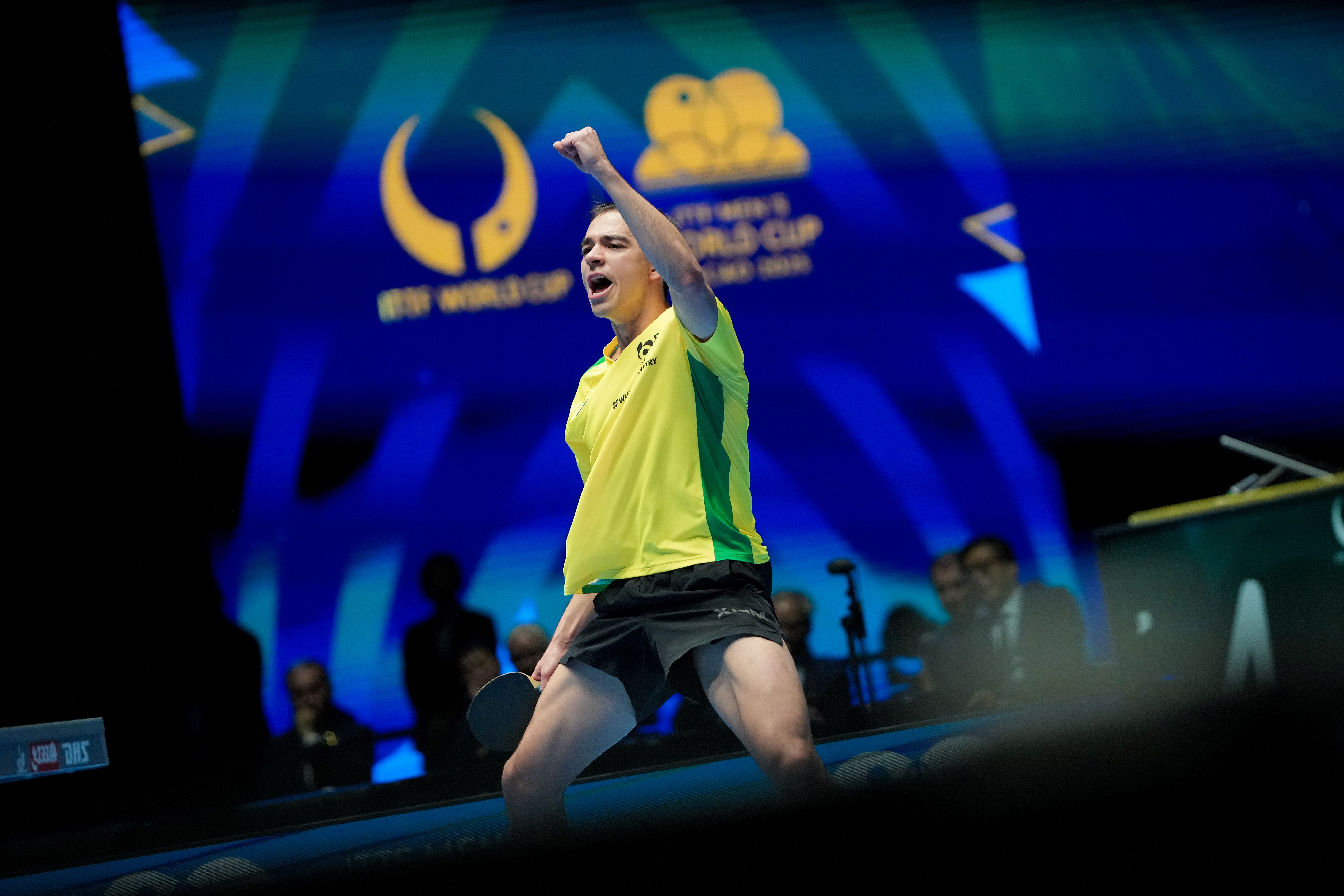 A final da Taça Mundial Masculina, o momento mais aguardado do dia, colocou frente a frente Lin Shidong e o brasileiro Hugo Calderano. Lin Shidong entrou melhor na partida, vencendo o primeiro set por 11-6. No entanto, Hugo Calderano reagiu com determinação, assumindo o controlo do jogo com uma postura ofensiva e confiante. Com uma série de jogadas eficazes e ritmo agressivo, venceu os quatro sets seguintes por 11-7, 11-9, 11-4 e 11-5, conquistando a vitória por 4-1. Com este triunfo, Hugo Calderano torna-se o primeiro jogador fora da Ásia ou da Europa a conquistar o título da Taça Mundial Masculina.