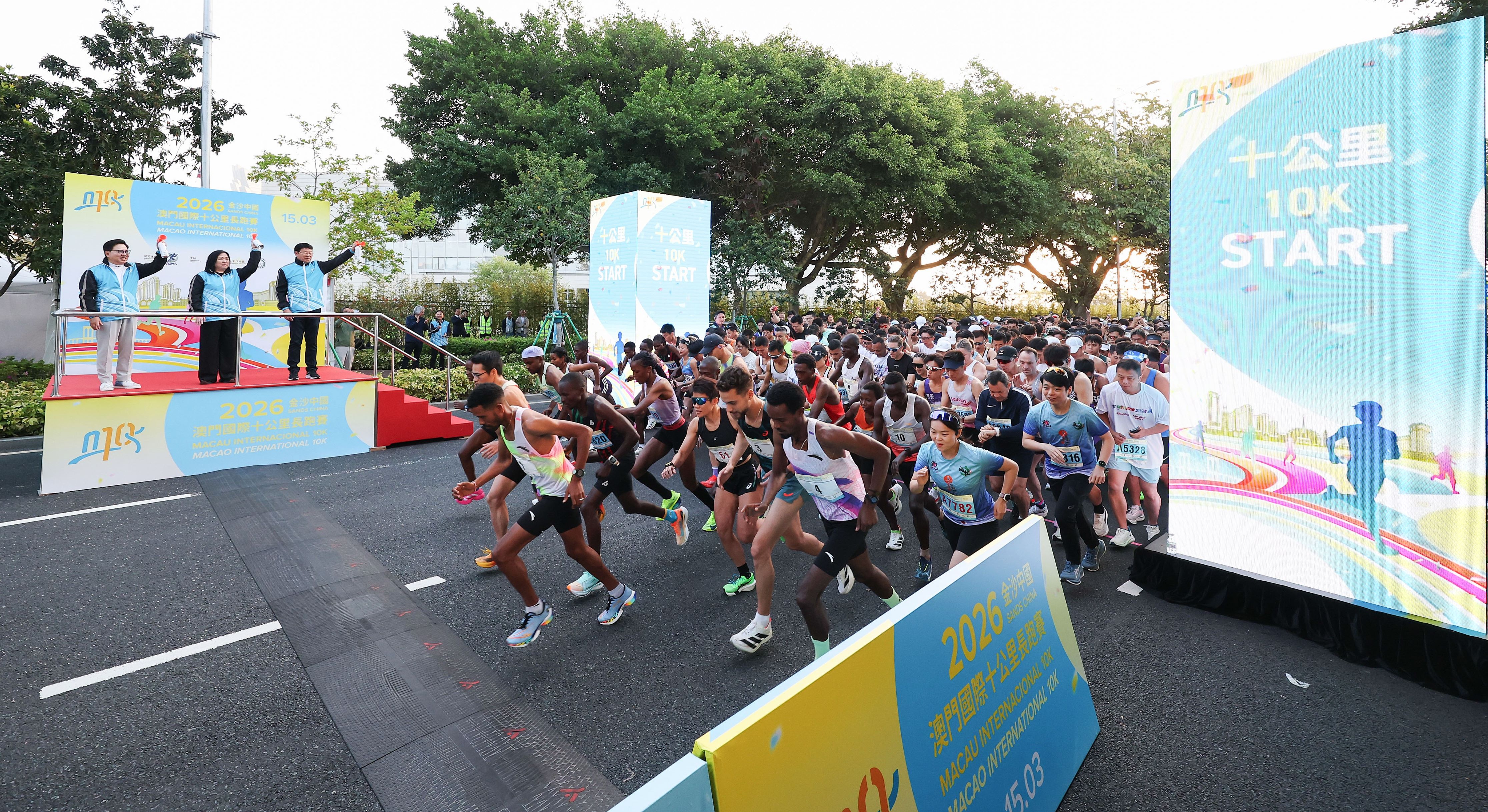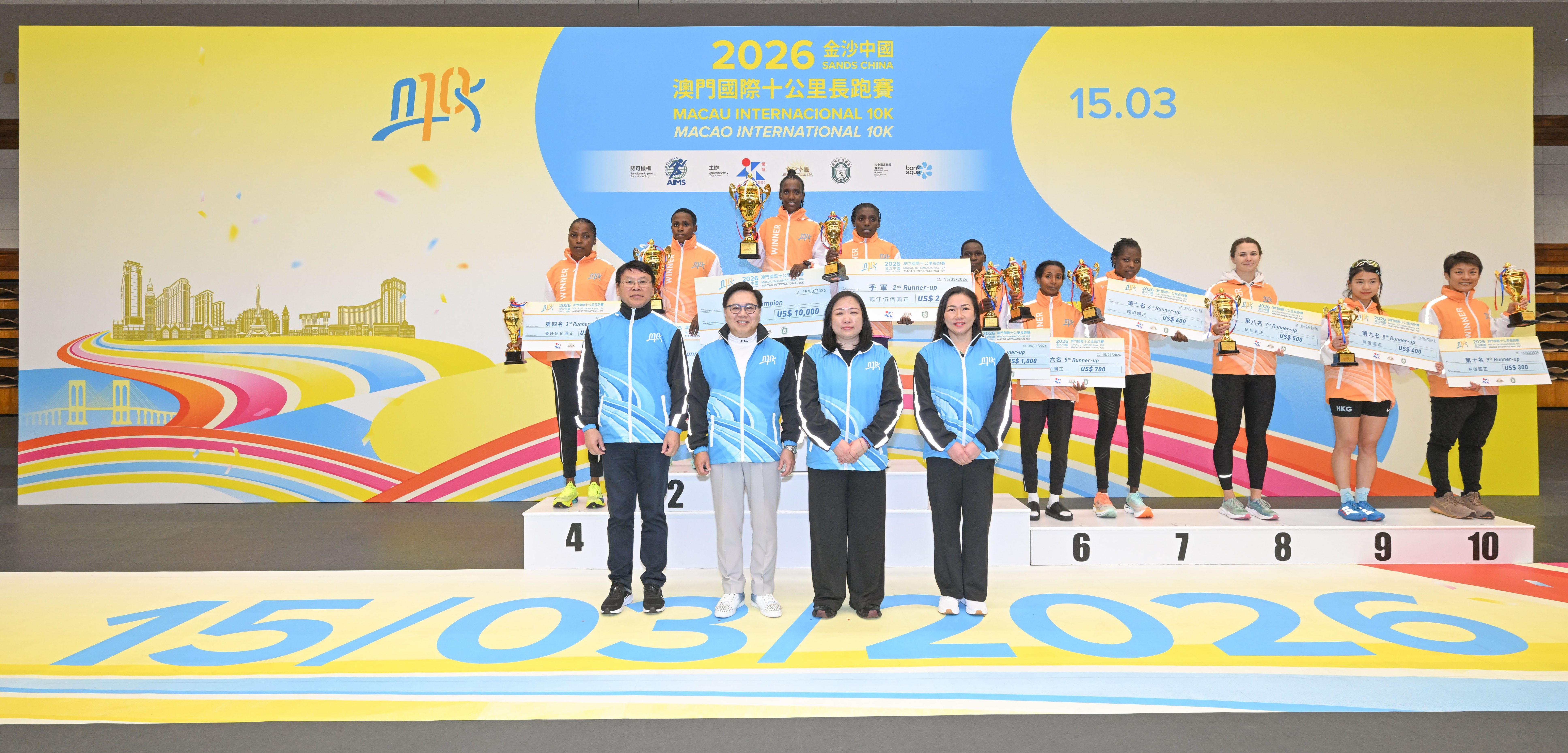 Realizou-se hoje, dia 15, “2026 Sands China Macau Internacional 10K”, com sucesso, que foi organizada em conjunto pelo Instituto do Desporto, Sands China Limited e a Associação Geral de Atletismo de Macau. A prova de 10Kcomeçou primeiro logo às 07:00 da manhã e a de Fun Run começou às 07:40. Finalmente, o etíope Aklilu Gebremariam Asfaw e a queniana Fridah Ndinda Mweu venceram, respectivamente, na categoria geral masculina e feminina dos 10K.