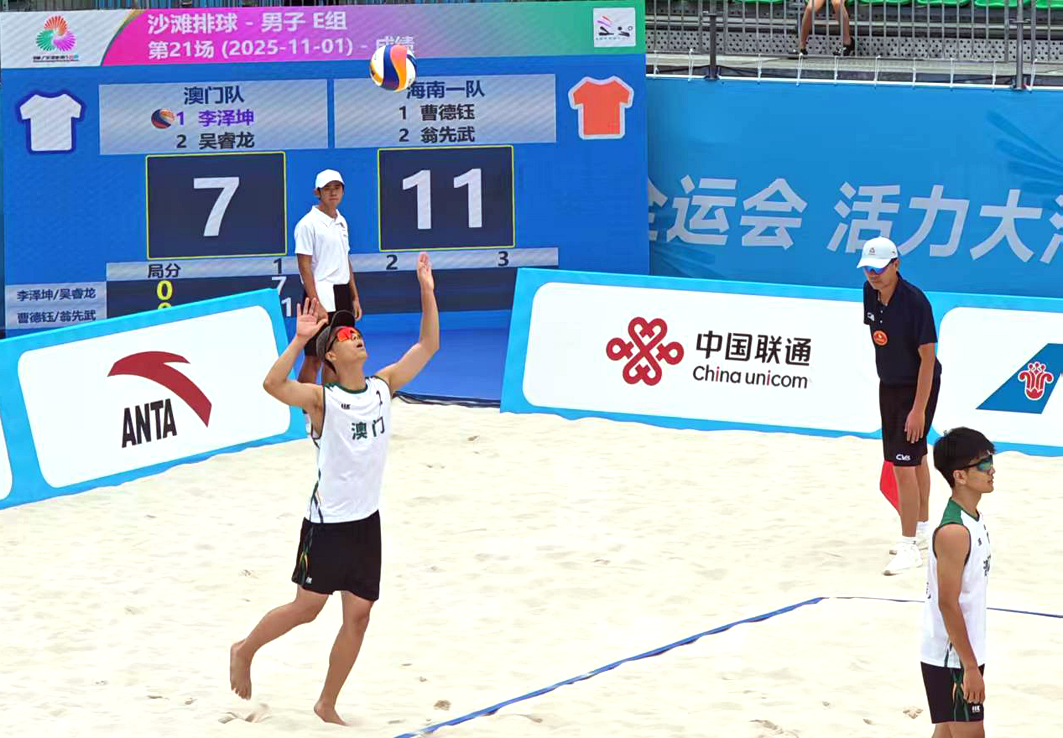 參加“第十五屆全國運動會”的澳門特區體育代表團今(1)日繼續兵分多路出戰多個項目賽事,包括沙灘排球、排球(男子U20組)、足球(男子U20組)及手球(男子組)的賽事。