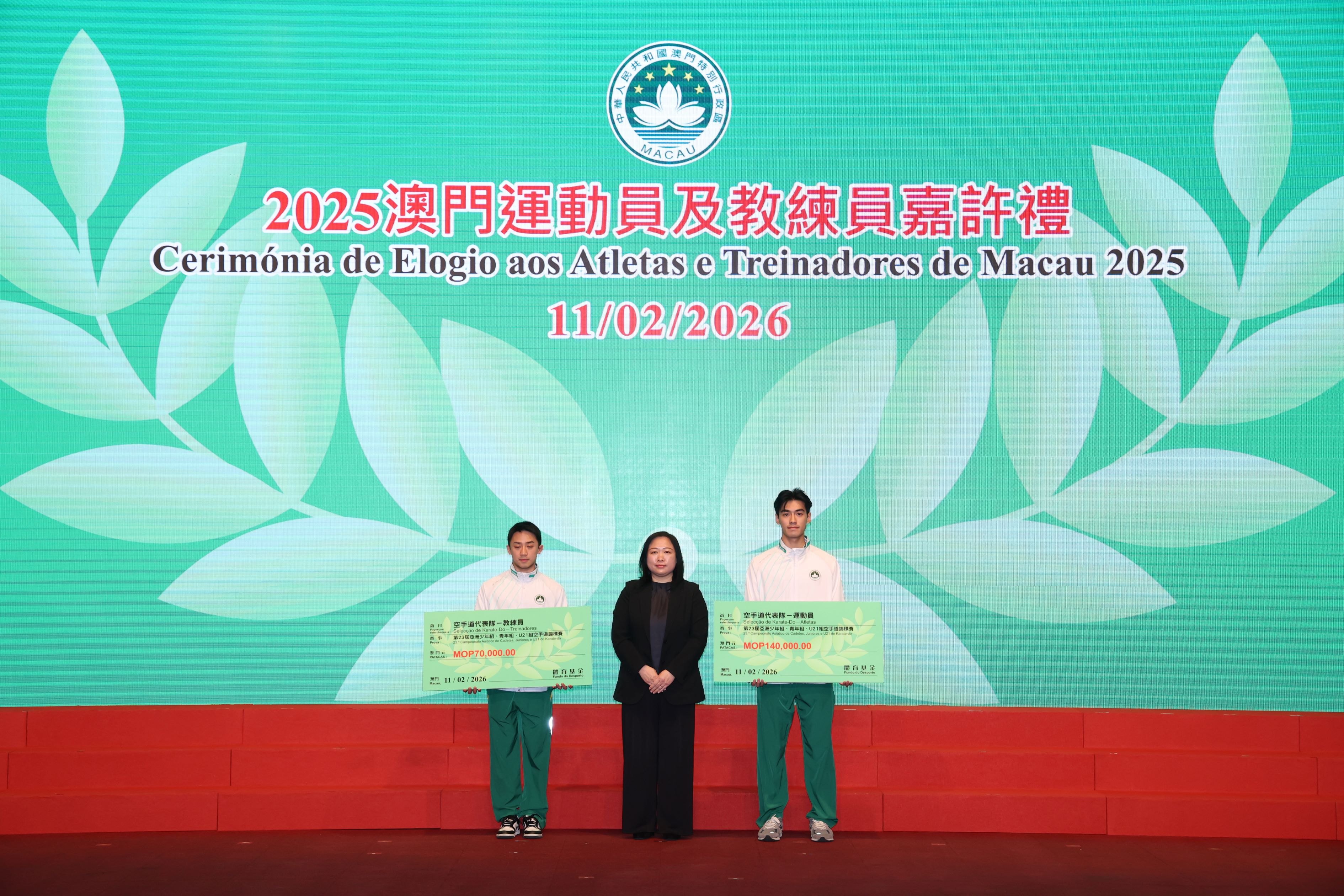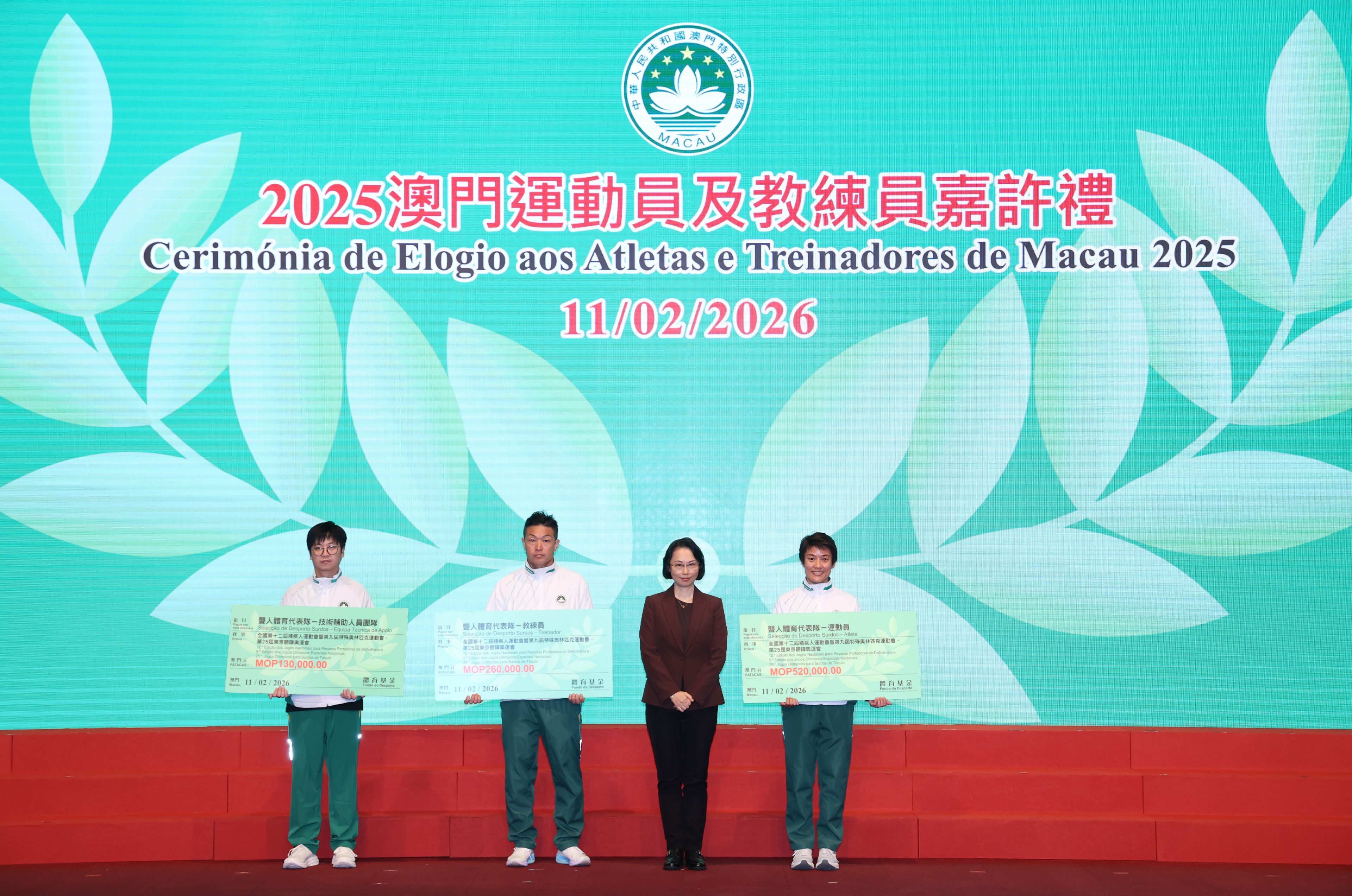 為表彰在2025年度參加體育比賽中獲得優秀成績的本澳運動員、教練員及技術輔助人員,以及為鼓勵澳門體育代表團在今年各項大型體育賽事中創造佳績,「2025澳門運動員及教練員嘉許禮暨2026體育代表團誓師儀式」今(11)日晚上七時半舉行,社會文化司司長柯嵐等出席儀式,勉勵並祝賀一眾運動健兒。