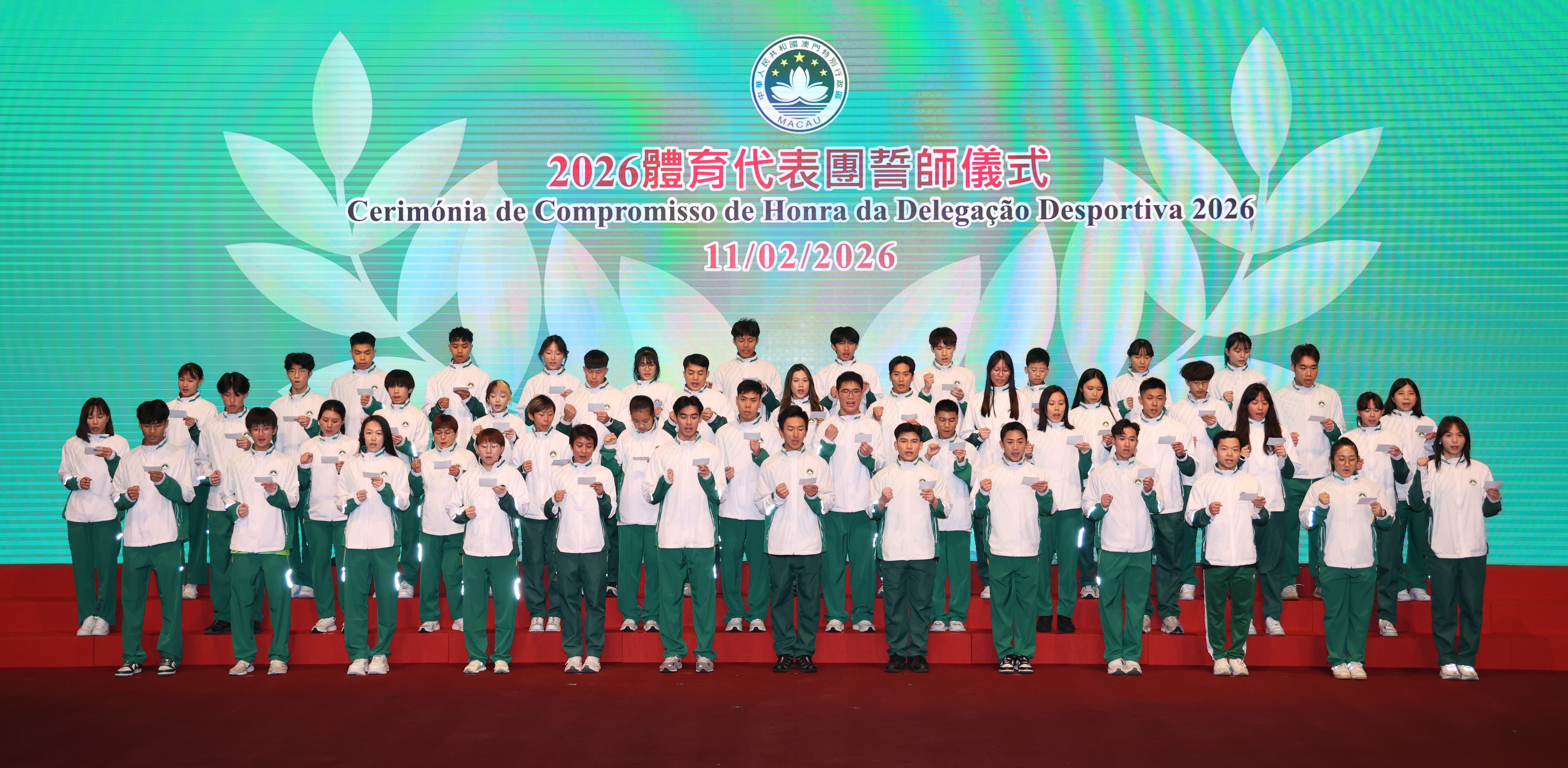 澳門體育代表團於2026年將參加包括「第二十屆亞洲運動會」、「第五屆亞洲殘疾人運動會」、「第六屆亞洲沙灘運動會」,以及「第六屆亞洲室內及武道運動會」等的大型綜合性運動會。於誓師儀式上,在柯嵐司長及各嘉賓見證下,運動員代表宣言承諾必定全力以赴,迎接今年各項運動會及賽事,為澳門爭光。