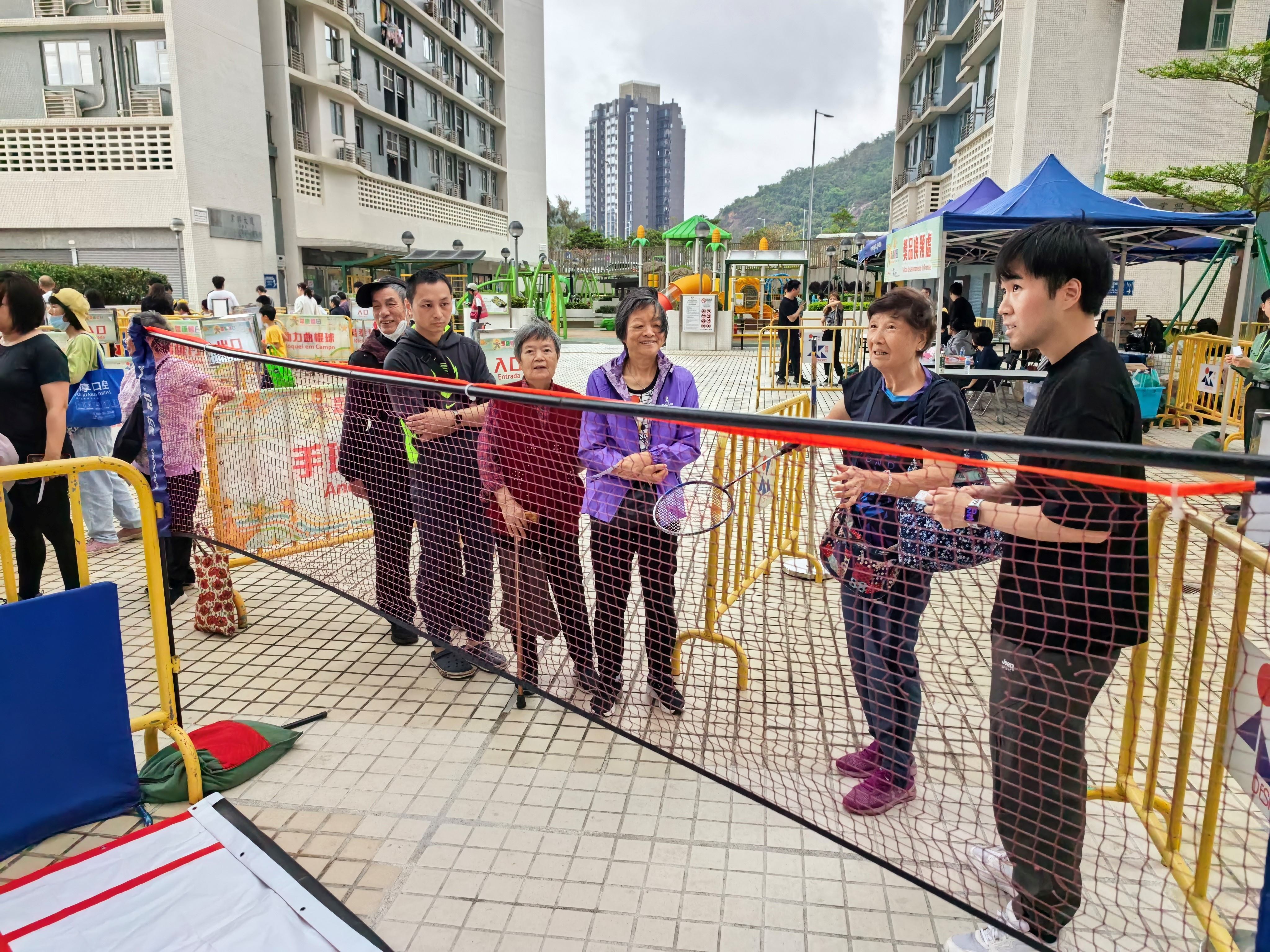 由體育局主辦的“大眾康體日”活動,於3月28日在石排灣業興休憩區舉行,活動吸引了眾多市民到場參與,當中有不少家長帶同子女前來參與,藉著參與康體活動增進親子關係,同時寓運動於娛樂。場內氣氛溫馨熱鬧,樂也融融。
