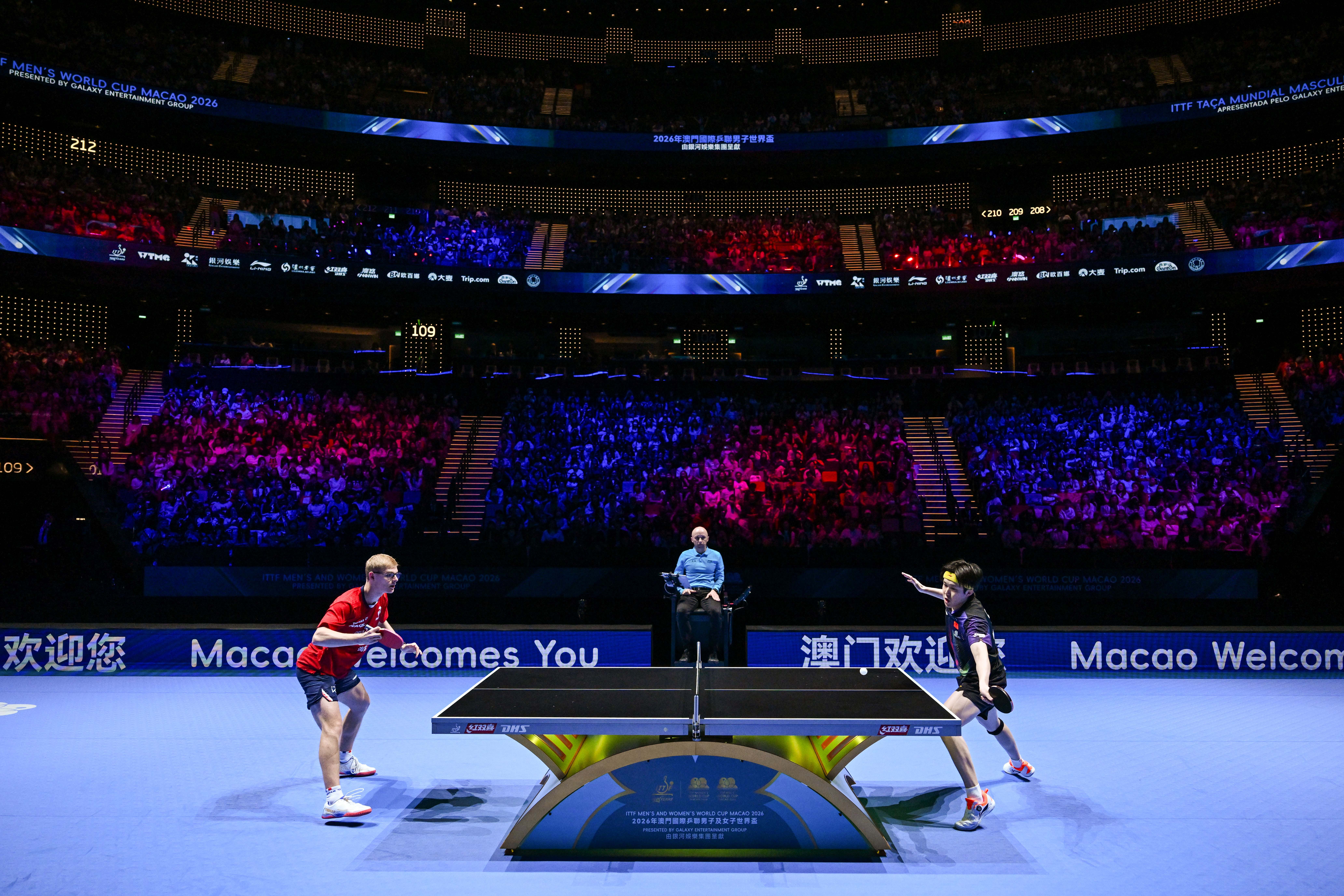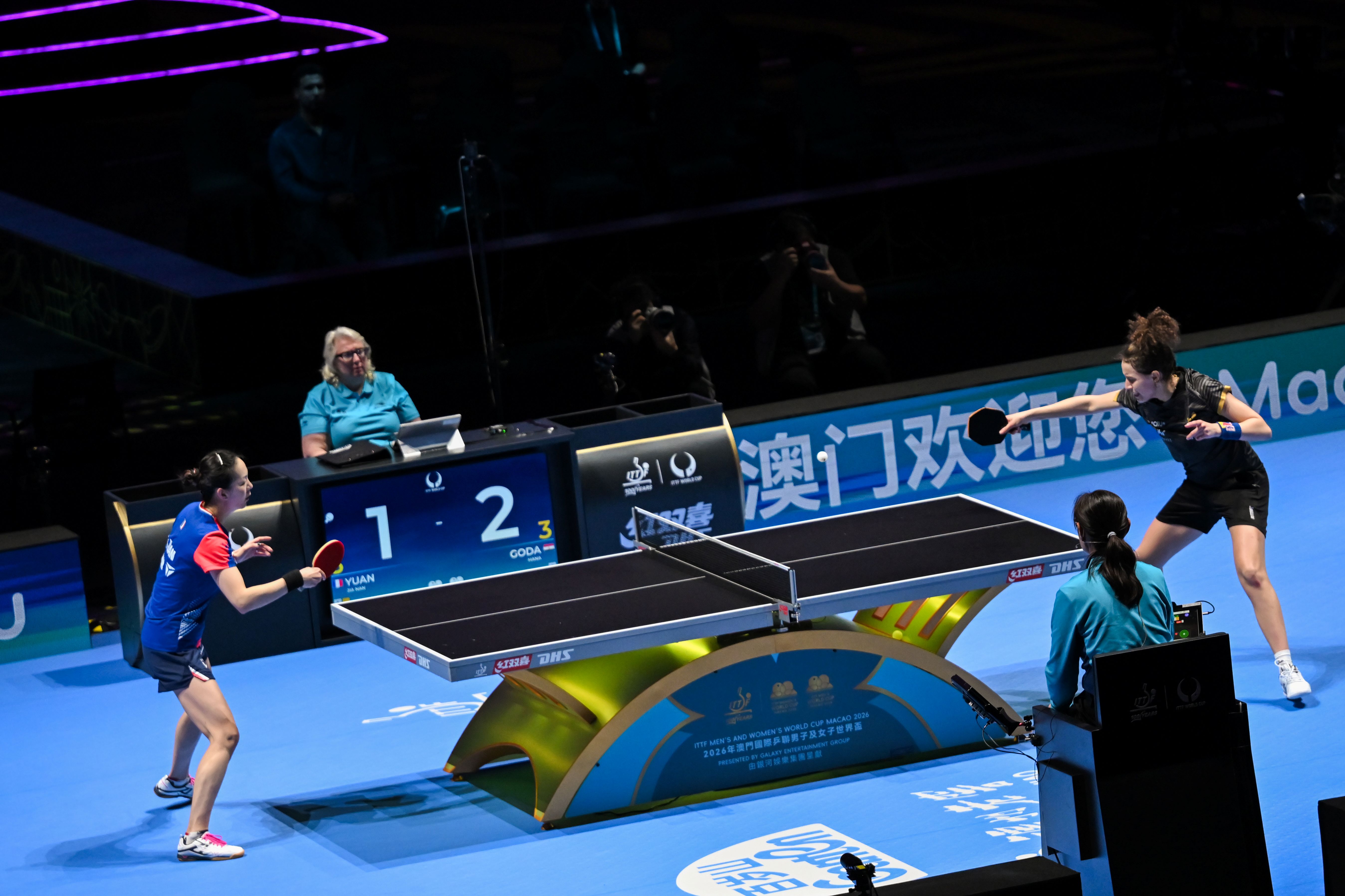 由國際乒乓球聯合會(ITTF)授權,體育局、銀河娛樂集團及世界乒乓球管理集團有限公司主辦、澳門乒乓總會協辦的「2026年澳門國際乒聯男子及女子世界盃 ─ 由銀河娛樂集團呈獻」今(3)日在銀河綜藝館完成十六強賽事。明(4)日將上演男、女子世界盃八強比拼,連場激戰精彩可期。