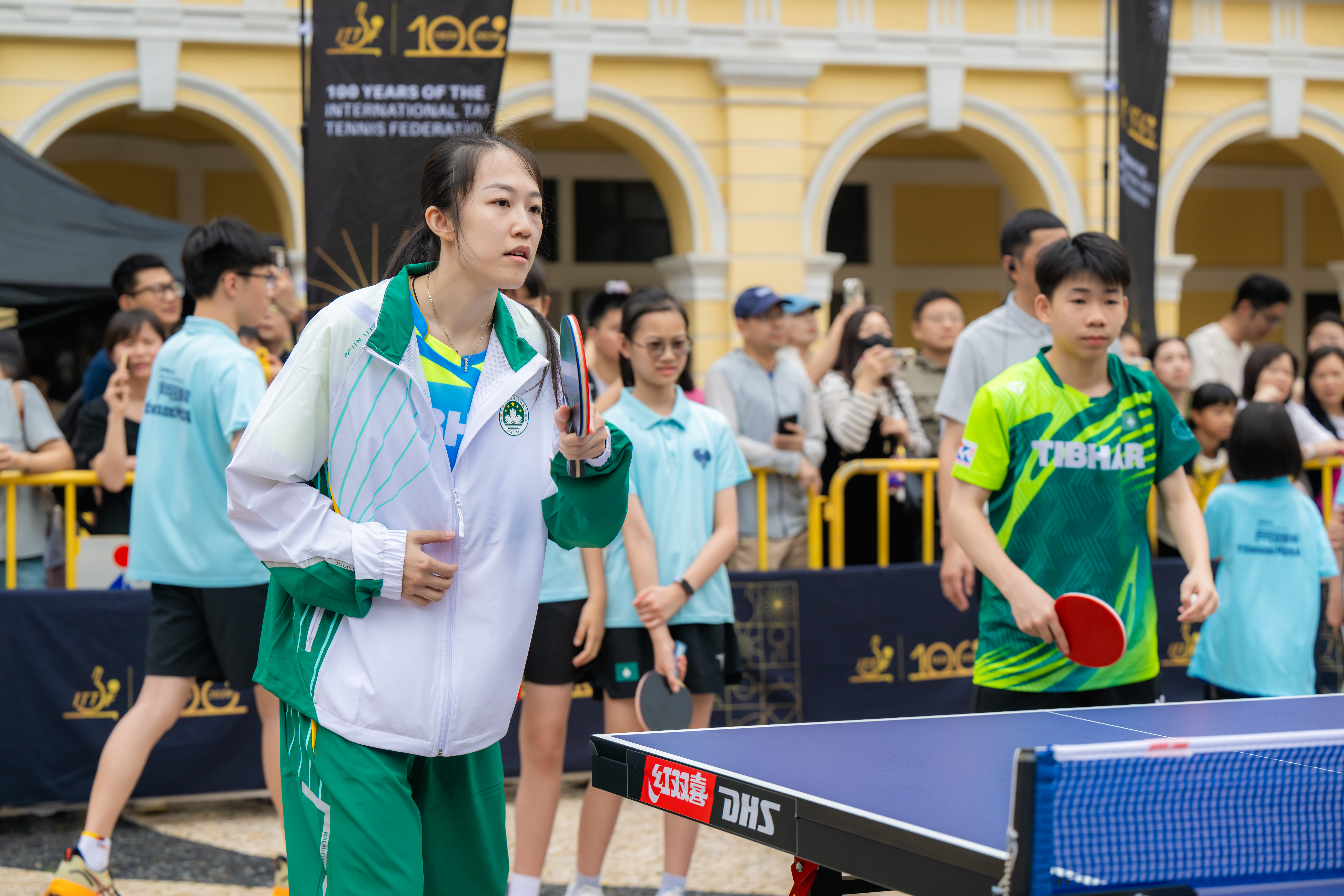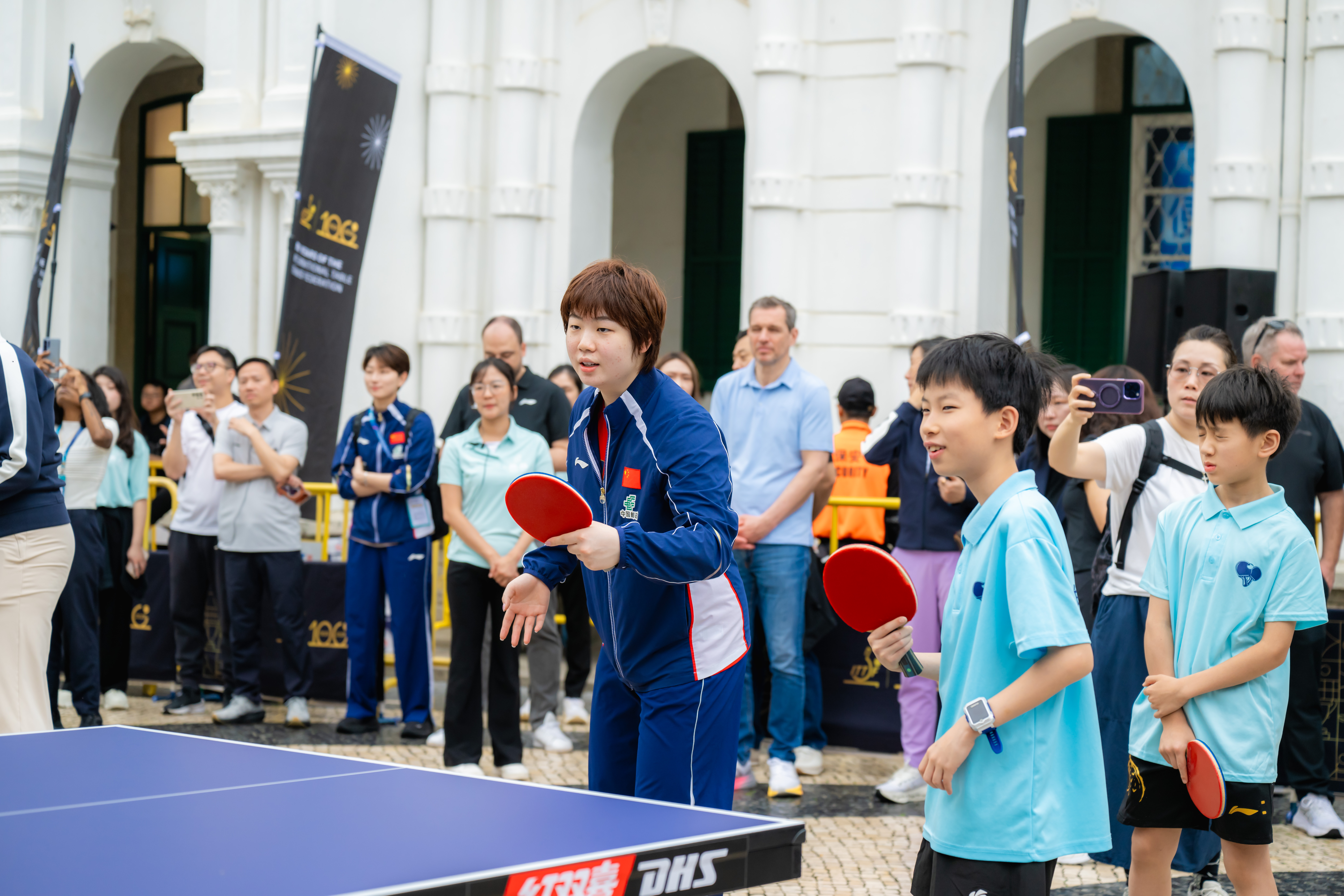 慶祝儀式於今(4)日上午議事亭前地舉行,邀請國際乒聯及中國乒乓球協會代表,以及中國乒乓球隊球員蒯曼、薛飛和中國澳門球手梁安娜,與澳門青少年乒乓球學校學員進行互動交流。出席儀式的嘉賓包括:國際奧委會委員、國際乒聯主席佩特拉·索林(Petra Sörling);國際奧委會委員邁克爾·姆龍茲(Michael Mronz);澳門體育局代局長李詩靈;中國乒乓球協會主席王勵勤;銀河娛樂集團企業事務董事林志成;國際乒聯副主席沈偉妮(Virginia Sung);世界乒乓球職業大聯盟首席執行官史蒂夫·丹頓(Steve Dainton);世界乒乓球管理集團副總裁陳欣;澳門乒乓球總會理事長許江雄。