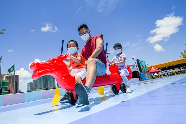 由體育局及中國澳門龍舟總會主辦,市政署及行政公職局協辦的“2020澳門國際龍舟賽”,將於明日(21日)在南灣湖水上活動中心上演小龍賽事。今日舉行的龍舟親子嘉年華活動順利舉行,氣氛熱鬧。