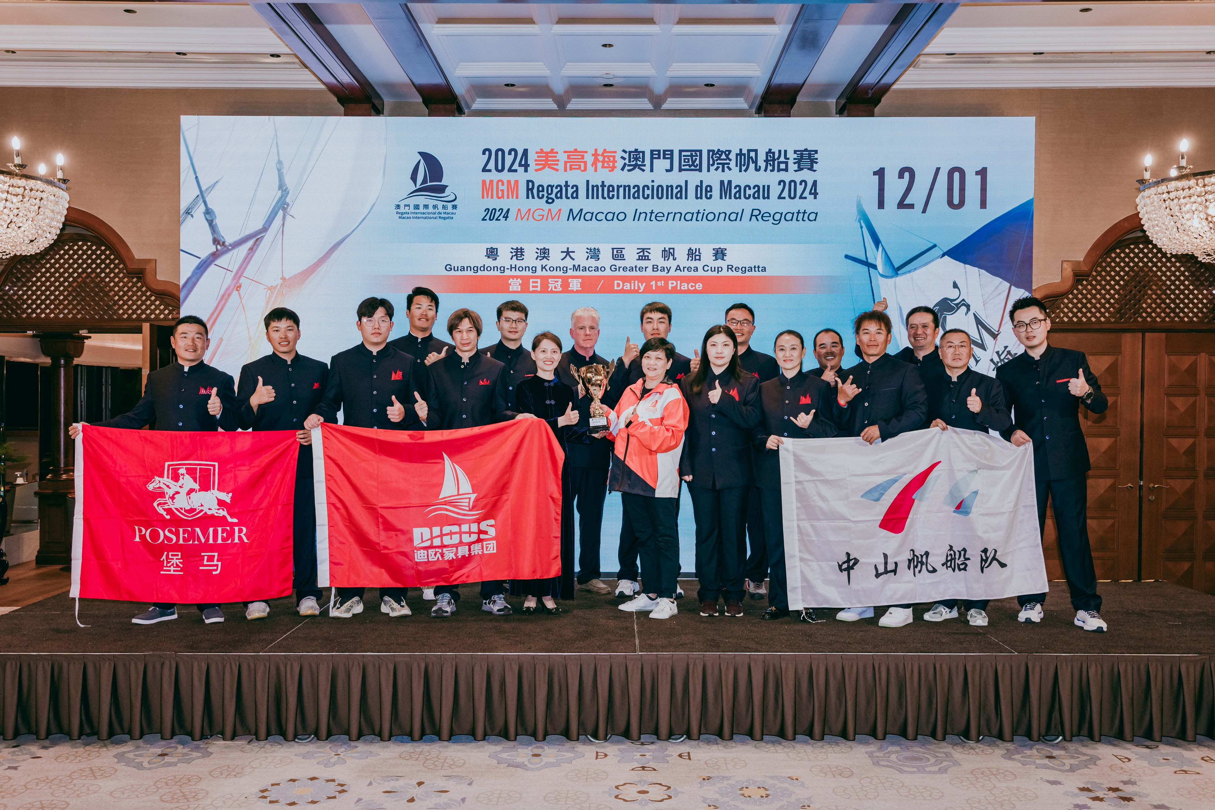 The organizers held a Daily Awards presentation ceremony after the conclusion of today’s races. Guests in attendance included Pun Weng Kun, President of Sports Bureau; Sandy Ling, Assistant Vice President of Brand Marketing of MGM; Ma Man Wai, President of the Ursa Major Sailing Event Management; Li Quanhai, Chairman of World Sailing; and Reid Lee, representative of Ursa Major Sailing Event Management.