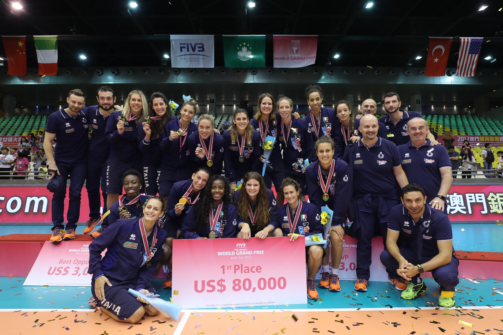 The FIVB Volleyball World Grand Prix Macao 2017, organized by the Sports Bureau of the Macao SAR Government and the Volleyball Association of Macao, China and presented by Galaxy Entertainment Group, concluded today (16 July) at the Macao Forum. Italy capped their perfect weekend and won the Macao leg with a straight-set victory over Turkey, while China won an exciting encounter by three sets to two against the USA to claim second-place.