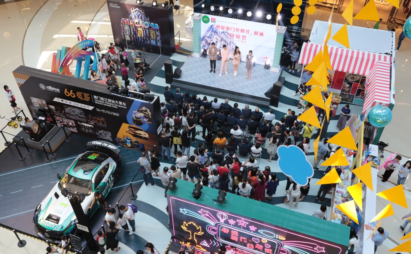 The promotion work of the Suncity Group 66th Macau Grand Prix is in full swing, and the Macau Grand Prix Organizing Committee participated in the promotional activities organized by the Macao Government Tourism Office in the Foshan Nanhai Wanda Plaza. A number of exhibition areas were set up at the venue, which introduced information about the Macau Grand Prix, and exhibited a racing car for the Greater Bay Area GT Cup – to be held for the first time at this year’s Macau Grand Prix. Motorsport fans were excited to take a close look at the racing car and to take photos, which increased their understanding of the racing event. A racing simulator was also set up to give participants a taste of driving racing cars. Moreover, the locals partook in mobile interactive games to win different prizes including tickets for the Macau Grand Prix.