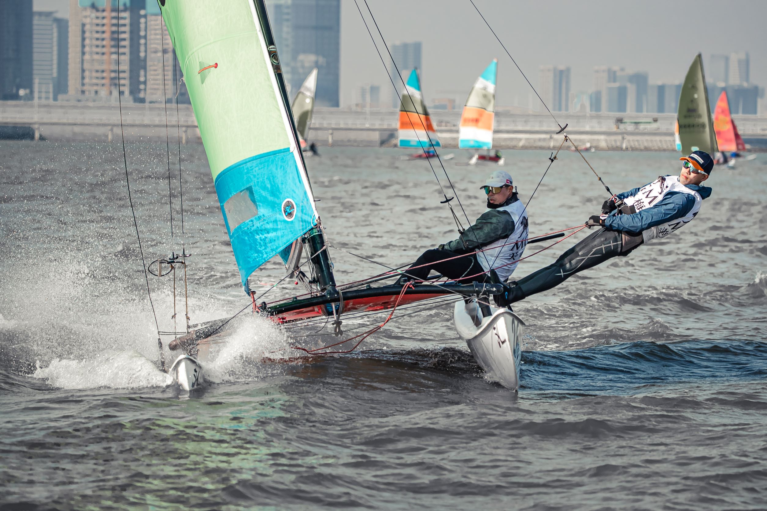 Participating teams resumed the fight on the second day of the 2023 MGM Macao International Regatta. Muwu BBQ, Guangzhou Nansha Sailing Team and Cat Fever won the second daily award of the Macao Cup International Regatta (Beneteau First 40.7 unified design group), the Guangdong-Hong Kong-Macao Greater Bay Area Cup Regatta (IRC group) and the International Catamaran Invitational (Hobie 16 unified design group), respectively.