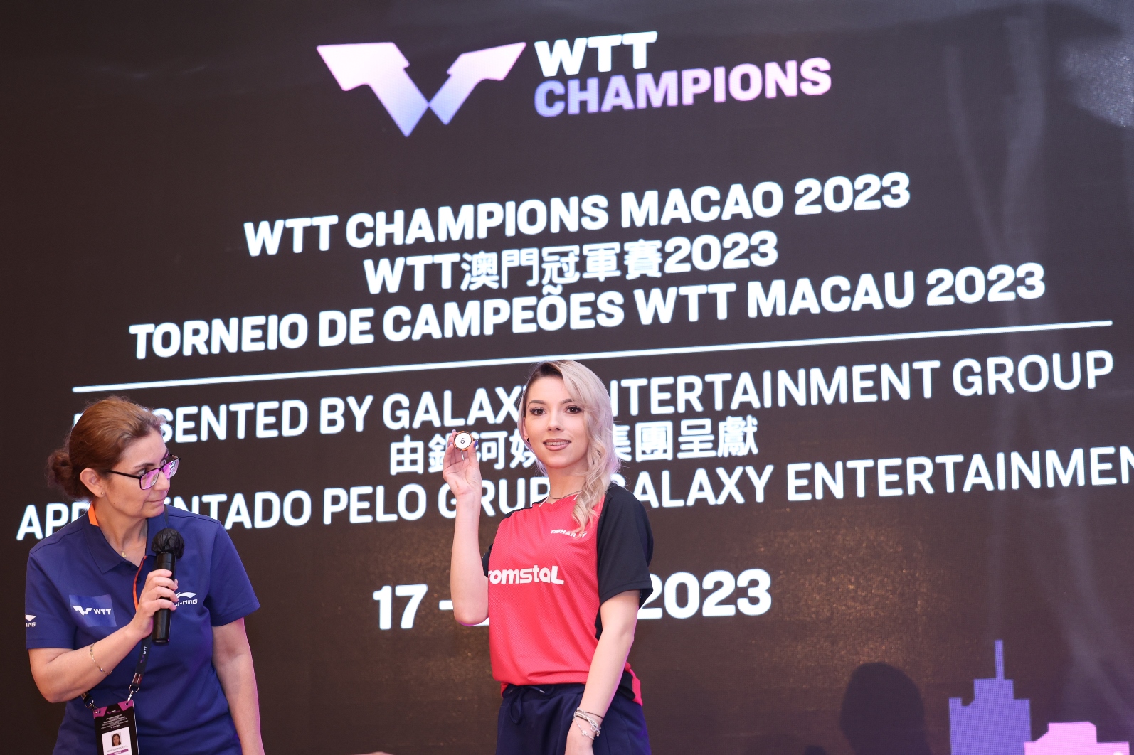 WTT Champions Macao 2023 presented by Galaxy Entertainment Group, organized by the Sports Bureau of the Macao SAR Government, World Table Tennis (WTT) and Galaxy Entertainment Group (GEG), and co-organized by the Macau Table Tennis General Association, will be held at Tap Seac Multisport Pavilion from 17 to 23 April 2023. The draw ceremony was held today and was attended by: Pun Weng Kun, President of the Sports Bureau; Philip Cheng, Director of Galaxy Entertainment Group; and players Truls Möregårdh from Sweden and Bernadette Szőcs from Romania.