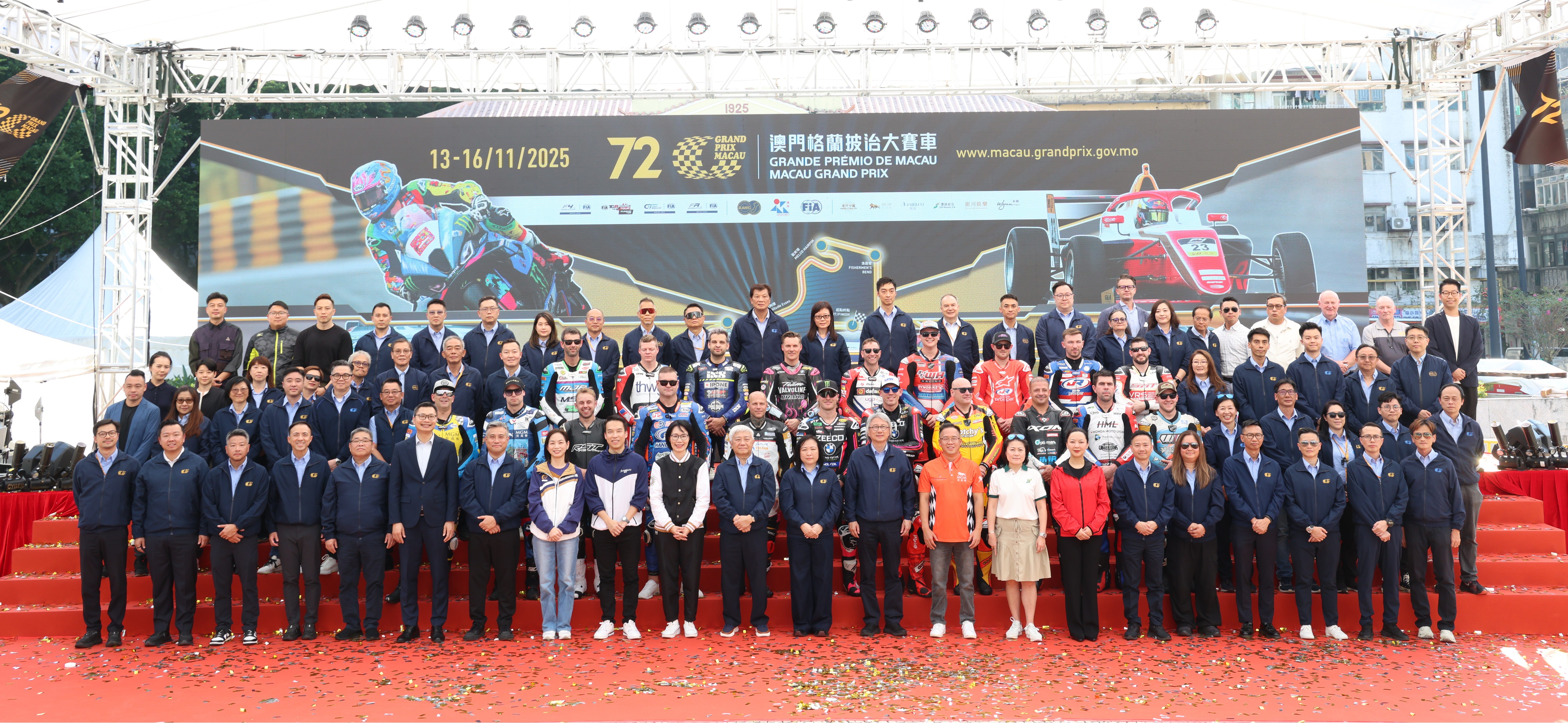 The 72nd Macau Grand Prix will be held from November 13th to 16th. The Macau Grand Prix Organizing Committee (MGPOC) held an opening ceremony at Tap Seac Square today (November 8th). The participating race cars and motorcycles on display plus Grand Prix riders on site attracted many residents and fans to visit the venue, creating a lively atmosphere.