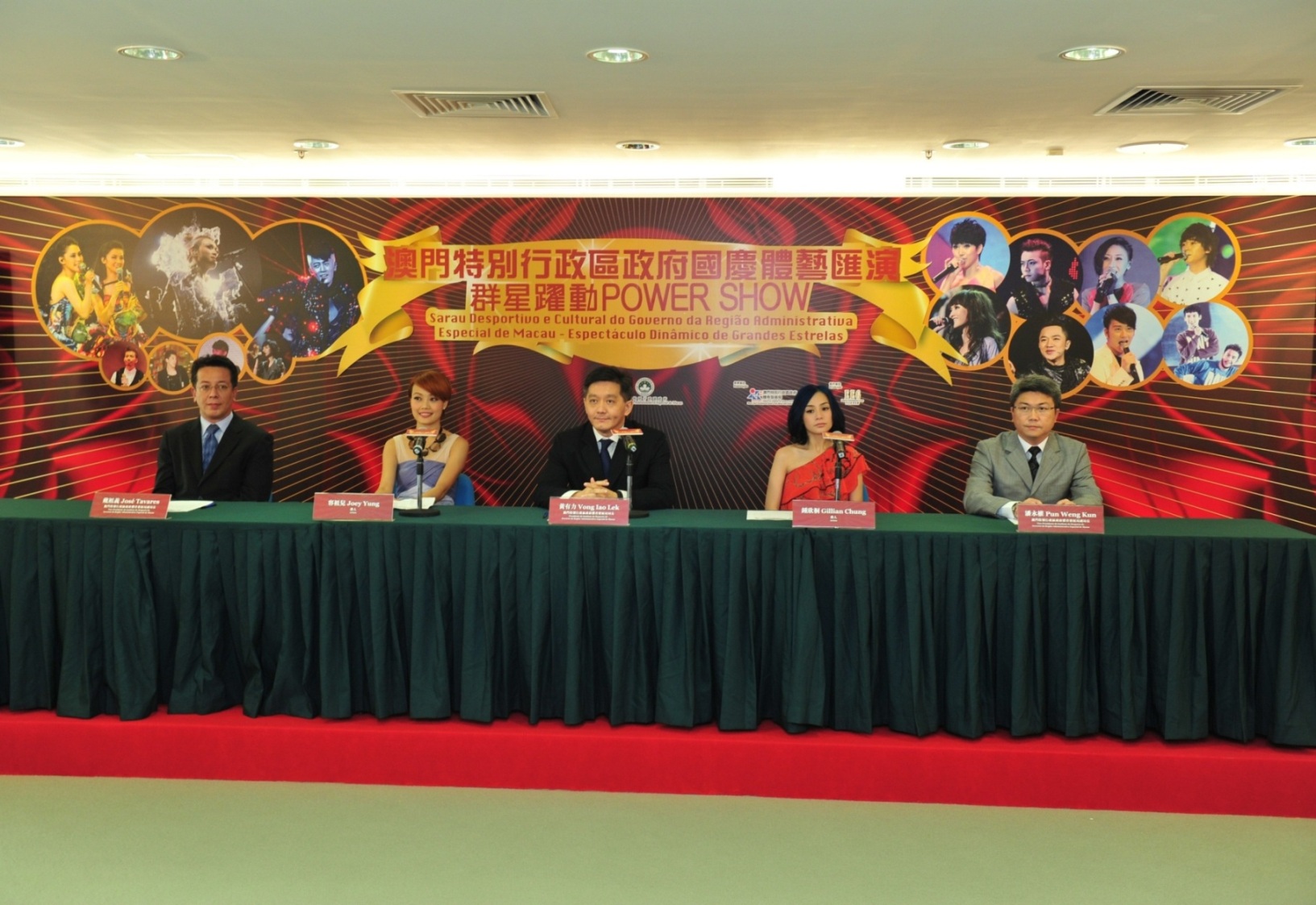 O “Sarau Desportivo e Cultural do Governo da Região Administrativa Especial de Macau – Espectáculo Dinâmico de Grandes Estrelas”, organizado pelo Governo da REAM e co-organizado pelo Instituto do Desporto, terá lugar no Dia Nacional da República Popular da China, pelas 14:00, na Nave Desportiva dos Jogos da Ásia Oriental. A aludida actividade é uma exibição integrada de entretenimento, arte e desporto que visa proporcionar à população um momento de divertimento e alegria durante o feriado. A entidade co-organizadora realizou ontem (29 de Agosto) a conferencia de imprensa para apresentar o programa do sarau e demais informações sobre o evento. Estiveram presentes o Presidente do Instituto do Desporto, Vong Iao Lek, os Vice-Presidentes do Instituto do Desporto, José Tavares e Pun Weng Kun, a artista Joey Iong, Gillian Chung, Ken Hung Boy’s, etc, na conferencia de imprensa.