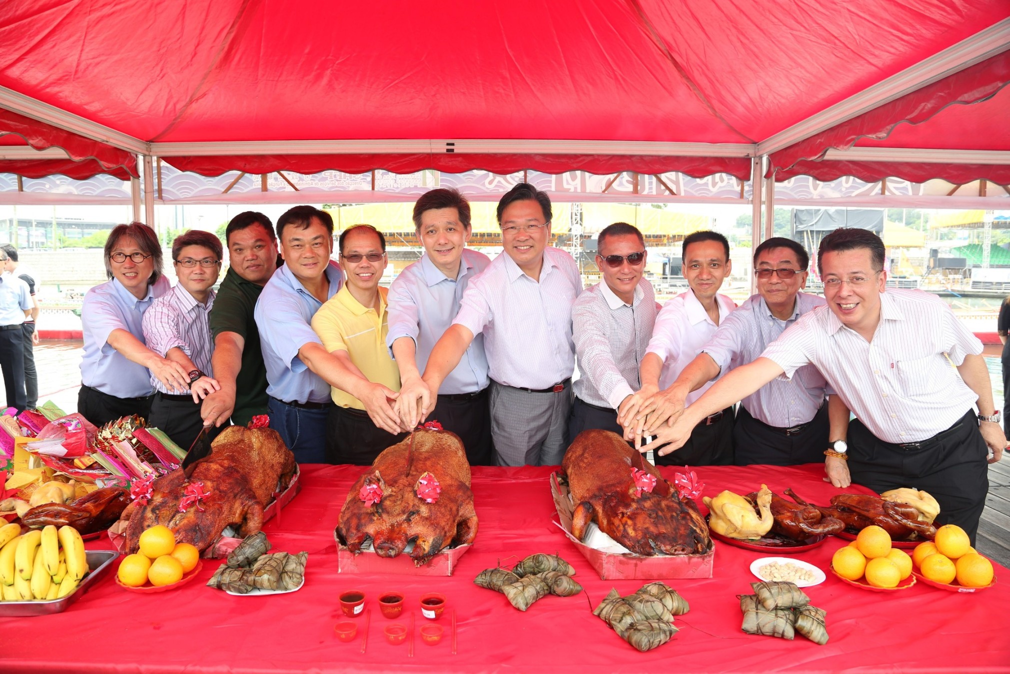 Todos os convidados procederam à vivificação e benção dos novos barcos-dragão. Após a cerimónia, 3 equipas locais demonstraram espírito de equipa e espírito competitivo no lago. Presidiram às cerimónias, Vong Iao Lek, Presidente do Instituto do Desporto, Lam Yin Lok, Presidente da Associação de Barcos de Dragão de Macau, China, Ma Kam Keong, Membro do Conselho de Administração do Instituto para os Assuntos Cívicos e Municipais, José Chu, Director dos Serviços de Administração e Função Pública, Ng Kuok Heng, Adjunto do Director-Geral dos Serviços de Alfândega, Vong Io Seng, Comandante do Corpo de Bombeiros, José Tavares e Pun Weng Kun, Vice-Presidentes do Instituto do Desporto, Chung Hon Kun, Presidente da Direcção da Associação de Barcos de Dragão de Macau, China e Lou Keng Chio, Presidente do Comitê Olímpico de Macau, entre outros.