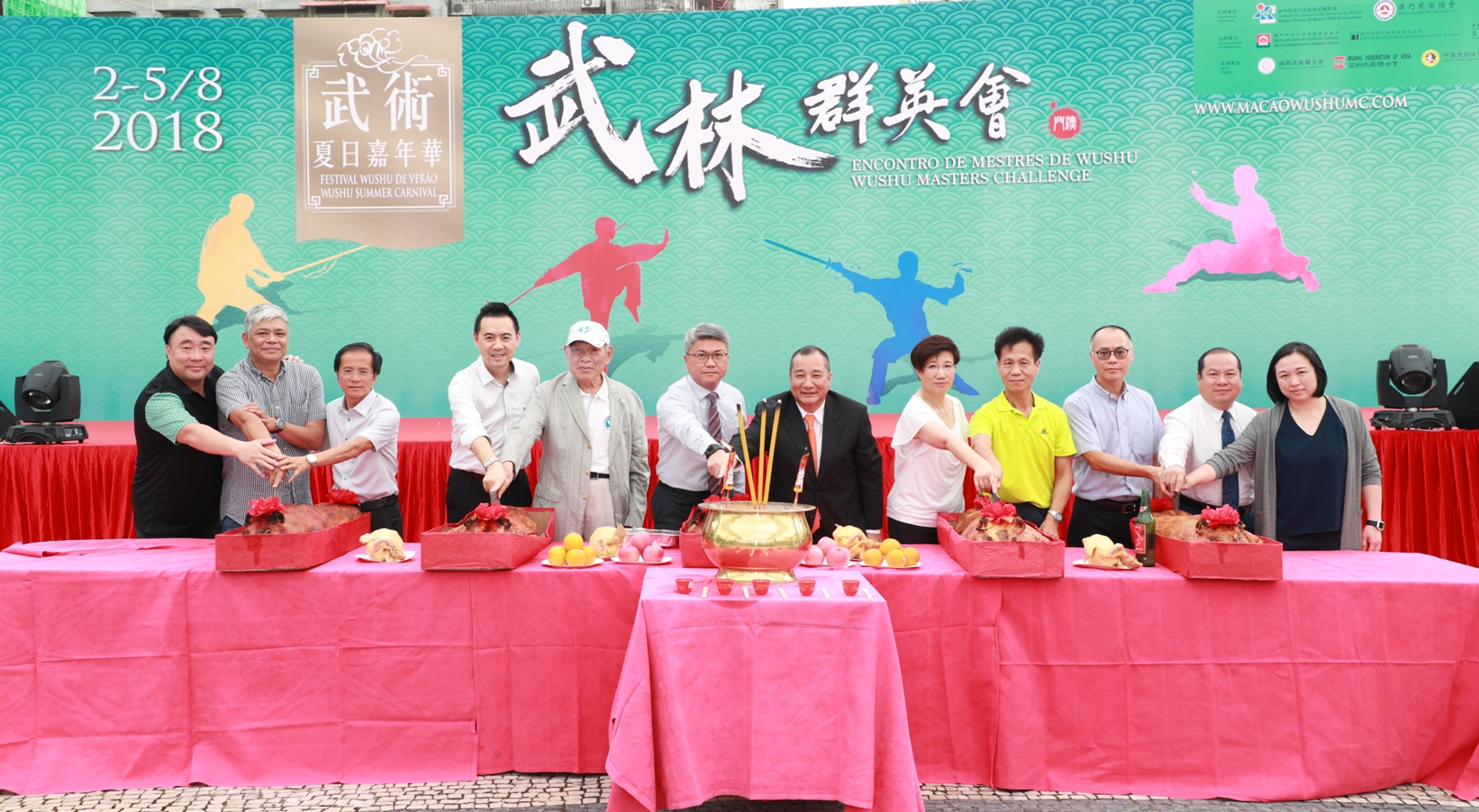Realiza-se a partir de amanhã (dia 2) o “Encontro de Mestres de Wushu 2018”, organizado em conjunto pelo Instituto do Desporto e pela Associação Geral de Wushu de Macau, e com a colaboração da Direcção dos Serviços de Turismo, do Instituto Cultural e do Fundo das Indústrias Culturais. Os organizadores realizaram hoje a cerimónia tradicional de benção na Praça do Tap Seac. Ademais, realizou hoje a cerimónia de abertura do “Campeonato Mundial Universitário de Wushu da FISU 2018”, presidida pelo Secretário para os Assuntos Sociais e Cultura, Dr. Alexis Tam, e anunciar a iniciação do evento.