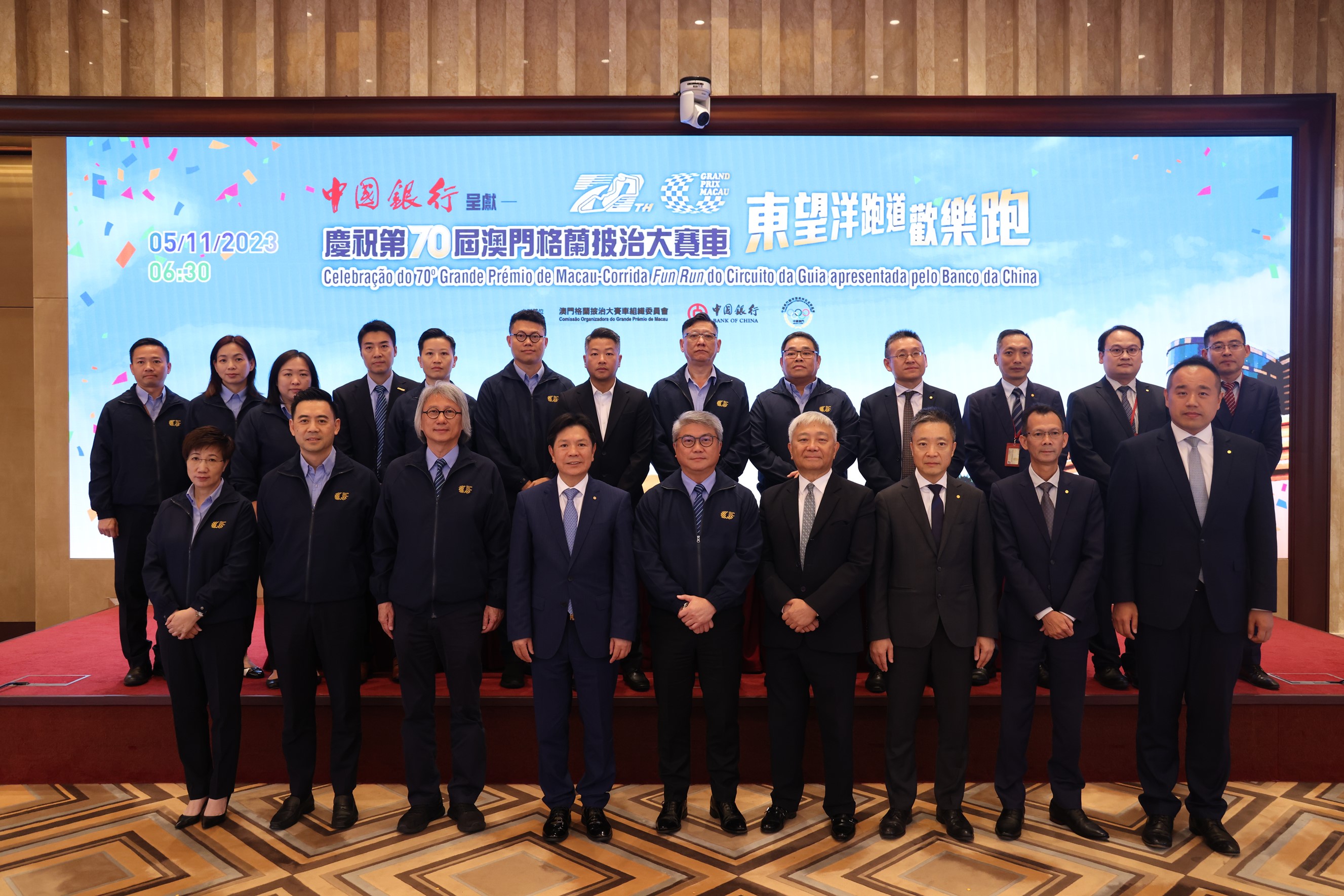 A “Celebração do 70º Grande Prémio de Macau – Corrida Fun Run do Circuito da Guia” – apresentada pelo Banco da China, organizada pela Comissão Organizadora do Grande Prémio de Macau (COGPM), pelo Banco da China (Macau) (BOC Macau) e pelo Comité Olímpico e Desportivo de Macau, China, terá lugar no dia 5 de Novembro às 6:30 horas. A conferência de imprensa foi realizada hoje, dia 17 de Outubro, no Edifício do Banco da China, onde foram anunciados o patrocinador titular e os detalhes deste evento. Neste evento haverá 4000 vagas para inscrição e os participantes poderão experienciar por si mesmos o “encanto de velocidade” do Circuito da Guia e sentir o ambiente de entusiamo do Grande Prémio de Macau.