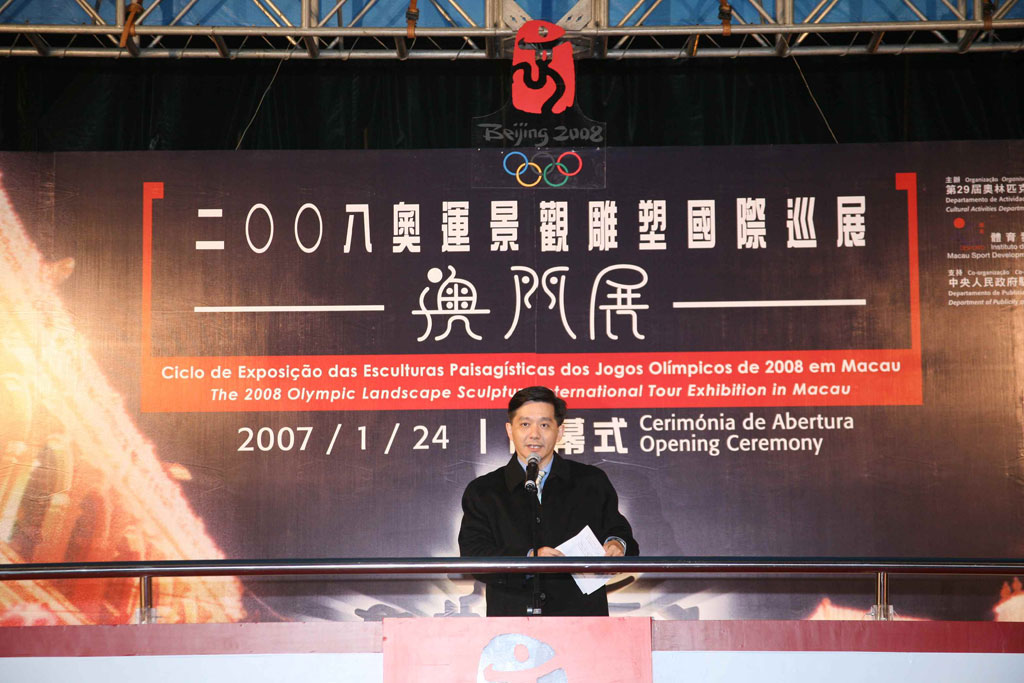 O Chefe do Departamento de Actividades Culturais do Comité Organizador dos 29.os Jogos Olímpicos, no seu discurso, agradeceu a colaboração do Instituto do Desporto e de outras entidades envolvidas nesta actividade cultural, considerando que as esculturas são um meio vivo para promover a cultura e o espírito dos movimentos olímpicos e afirmou-se convicto de que a Exposição, como aconteceu em outras cidades, será bem acolhida pela população de Macau. Este Dirigente disse ainda esperar que a Exposição possa suscitar a interacção entre Beijing, RAEM e outras cidades chinesas e, na sua sequência, o interesse de todo o povo da China nos Jogos Olímpicos de Beijing, de tal forma que se concretize o objectivo de envolver toda a China nos Jogos Olímpicos de Beijing.