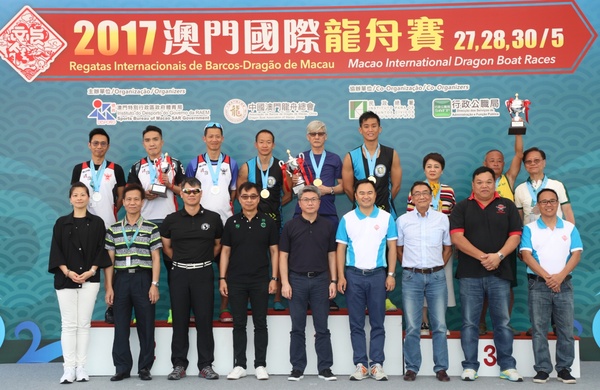 Presidiram à entrega de prémios o Sr. Pun Weng Kun, Presidente do Instituto do Desporto, a Sra. Leong On Kei, Deputada da Assembleia Legislativa, o Sr. Zheng Anting, Deputado da Assembleia Legislativa, o Sr. Chung Hon Kun, Presidente da Direcção da Associação de Barcos de Dragão de Macau, China, o Sr. Leong Man Cheong, Comandante do Corpo de Polícia de Segurança Pública, o Sr. Chao Ka Cheong, Comandante Substituto do Corpo de Bombeiros, o Sr. Charles Lo, Presidente do Comité Olímpico e Desportivo de Macau, China, Sr. Leong Chong Leng, Sr. Ng Iat On e Sra. Ng Ka Teng, Membros do Conselho do Desporto.