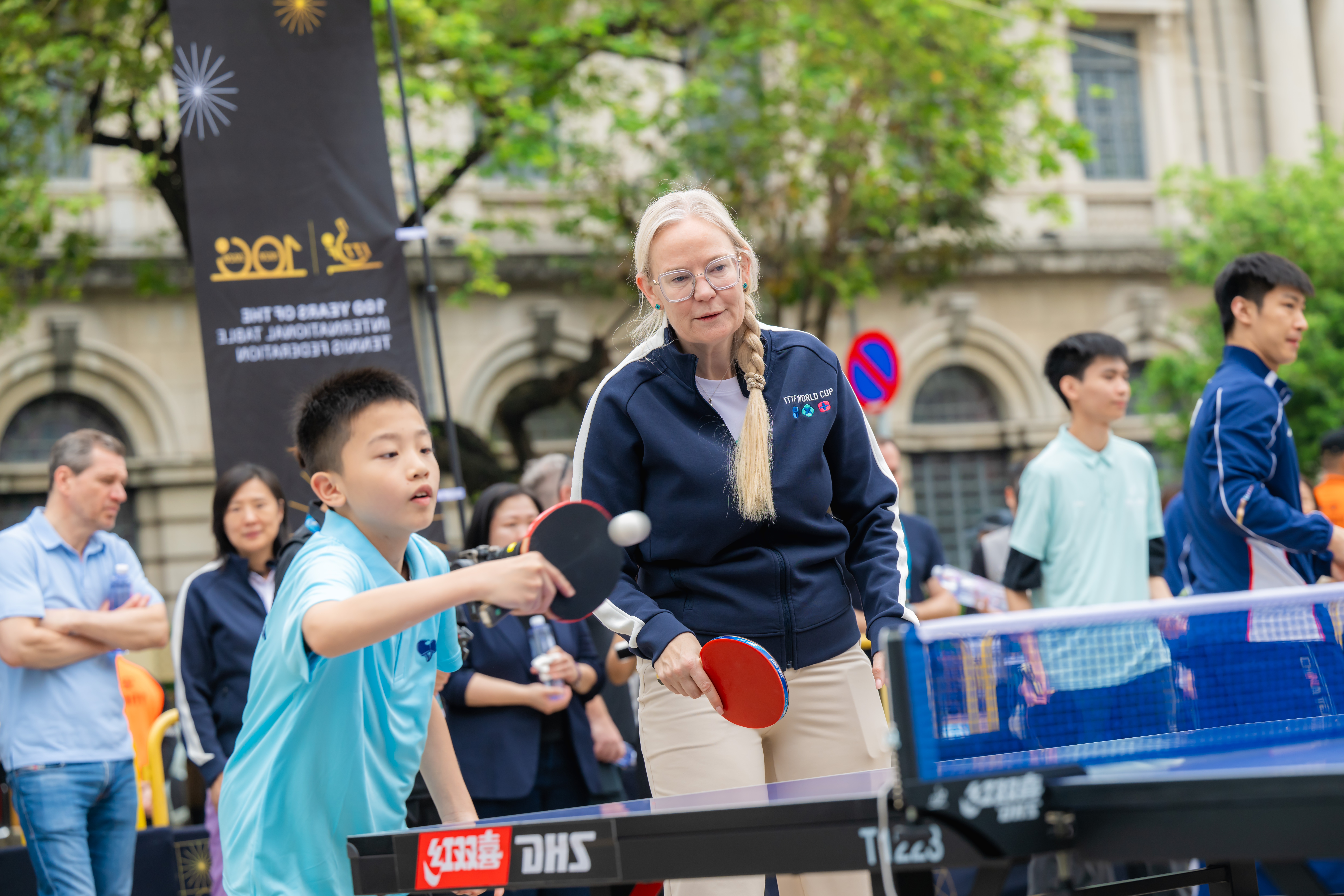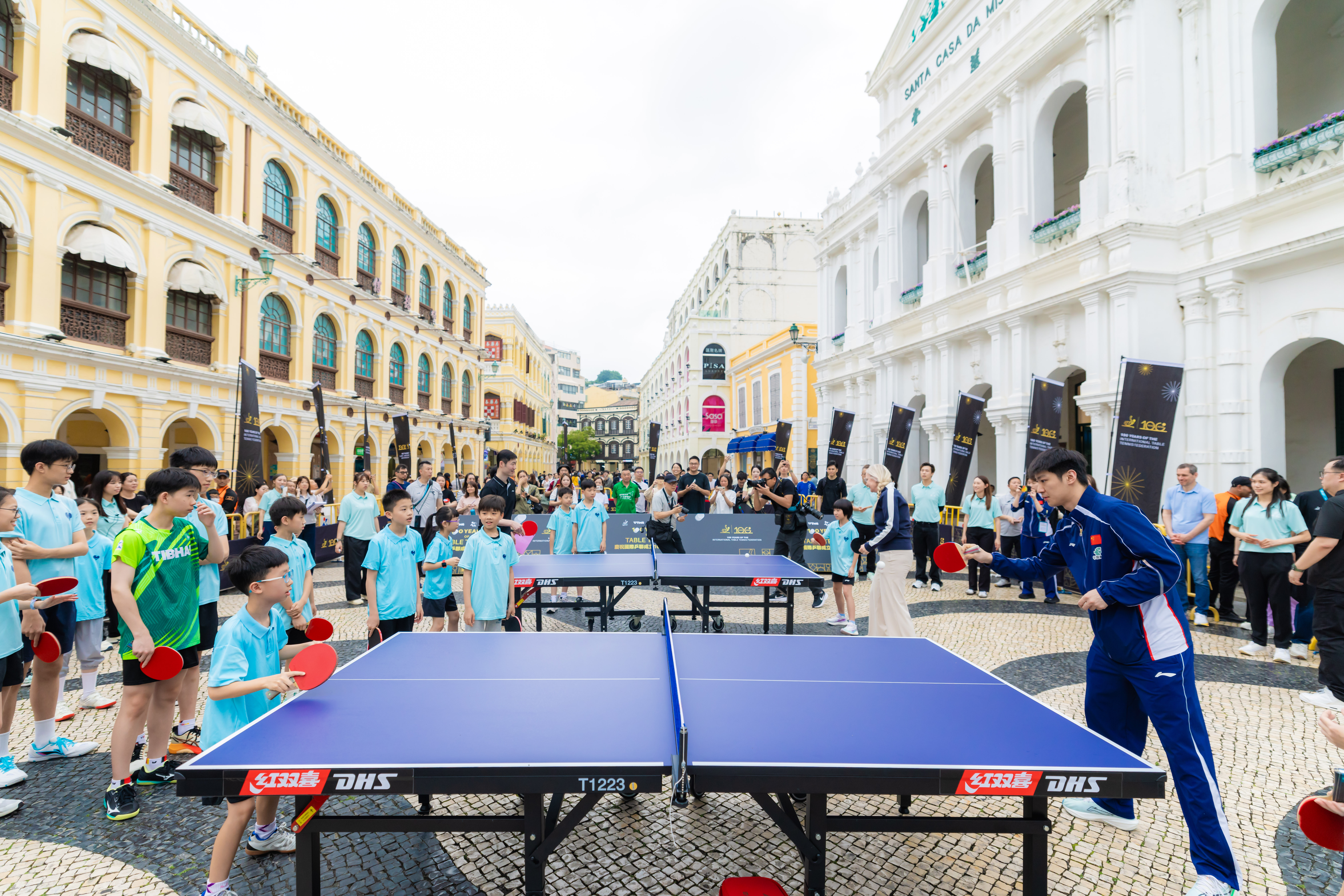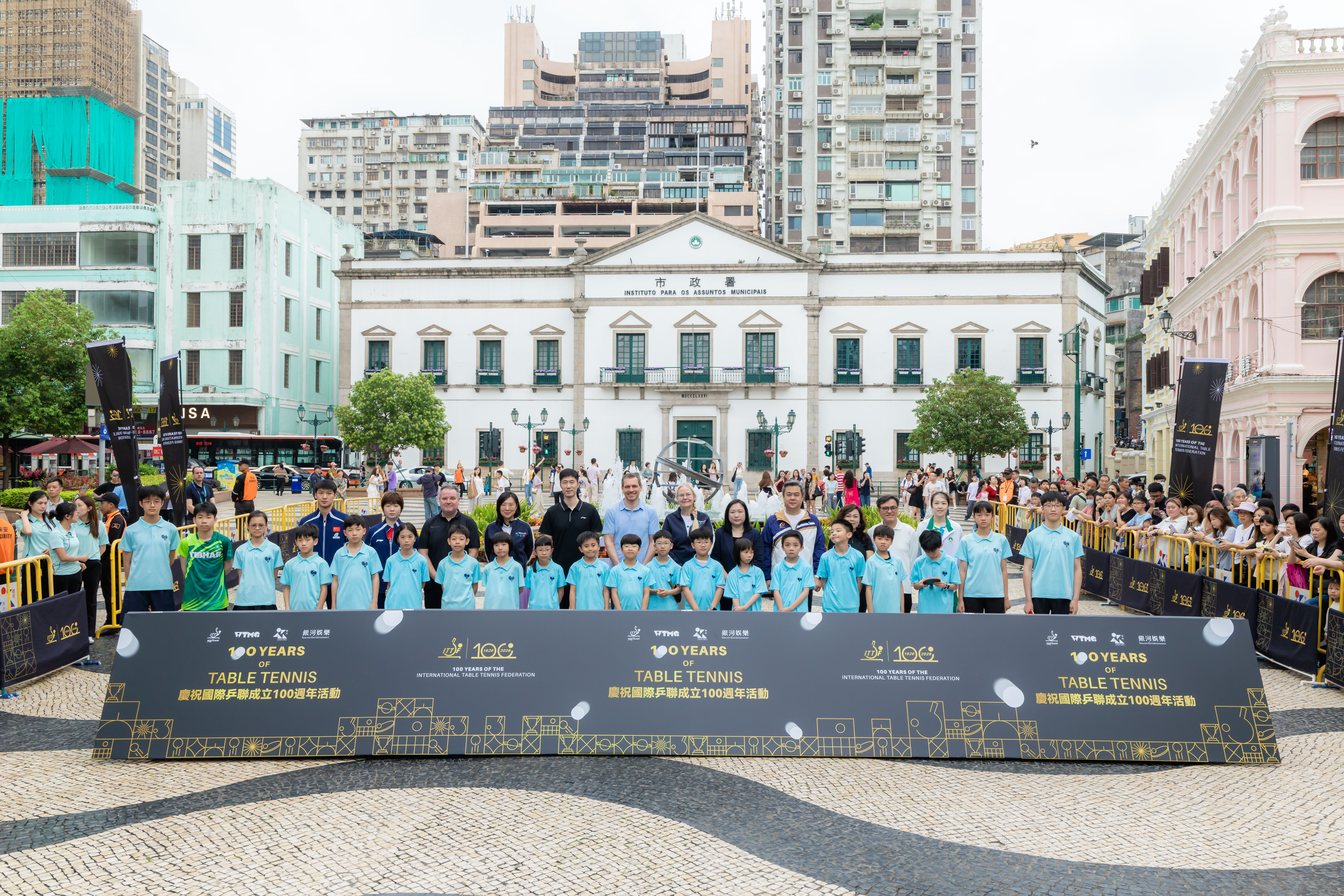 慶祝儀式於今(4)日上午議事亭前地舉行,邀請國際乒聯及中國乒乓球協會代表,以及中國乒乓球隊球員蒯曼、薛飛和中國澳門球手梁安娜,與澳門青少年乒乓球學校學員進行互動交流。出席儀式的嘉賓包括:國際奧委會委員、國際乒聯主席佩特拉·索林(Petra Sörling);國際奧委會委員邁克爾·姆龍茲(Michael Mronz);澳門體育局代局長李詩靈;中國乒乓球協會主席王勵勤;銀河娛樂集團企業事務董事林志成;國際乒聯副主席沈偉妮(Virginia Sung);世界乒乓球職業大聯盟首席執行官史蒂夫·丹頓(Steve Dainton);世界乒乓球管理集團副總裁陳欣;澳門乒乓球總會理事長許江雄。