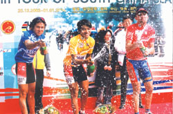 由國家自行車運動協會、香港單車聯會及澳門單車總會主辦的,第八屆環南中國海自行車大賽,終於完成了香港、廣州、深圳、珠海、中山及澳門共七站的巡 迴比賽。總決賽在澳門上演,2003年的12月31日上午九時在路環山進行了十圈全長九十二公里的個人公里賽。經過多日的激戰,俄羅斯選手格斯堅Oleg Grishkin以16小時40分23秒的成績奪取今屆總時間第一名(黃色戰衣);而香港的黃金寶則以16小時40分44秒的成績獲得最佳大中華運動員 (藍色戰衣); 團體總冠軍則由俄羅斯隊取得。