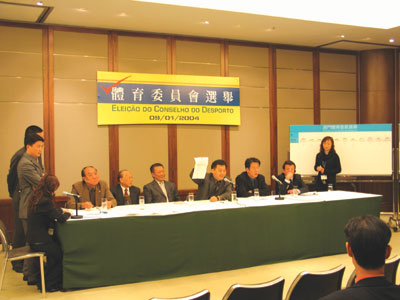 一月九日下午六時,2004-2006年度體育委員會選舉,在澳門旅遊塔三樓會議中心舉行。 十位體育委員會選舉產生委員,只經過一輪投票便順利產生。