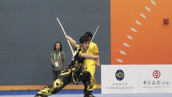 昨日武術進行了多項賽事,共奪得2銀3銅。套路方面,席成清及李詠詩在女子刀術、棍術全能分別以總分19.49及18.12奪得第二名及第三名,賈瑞及温家樂在男子刀術、棍術全能分別以總分19.55及18.14奪得第二名及第七名,尤俊賢在男子太極拳、太極劍全能以總分19.46奪得第三名。朱志偉及何司行分別在男子劍術、槍術全能中劍術項目及女子太極拳、太極劍全能中太極劍項目,以9.74及9.72分數暫列第二名及第三名,今日(12日)將繼續出戰餘下的男子槍術及女子太極拳賽事。散打方面,蔡俊龍在昨日下午進行的男子65kg的賽事中,以0比2不敵韓國選手,與蒙古選手並列獲得第三名,蔡良蟬在男子70kg之循環賽中對戰中華台北選手,以2比0取勝,今日(13日)將對戰蒙古選手,而另一選手秦志堅則出戰男子60kg賽事的決賽,對手為韓國選手。
