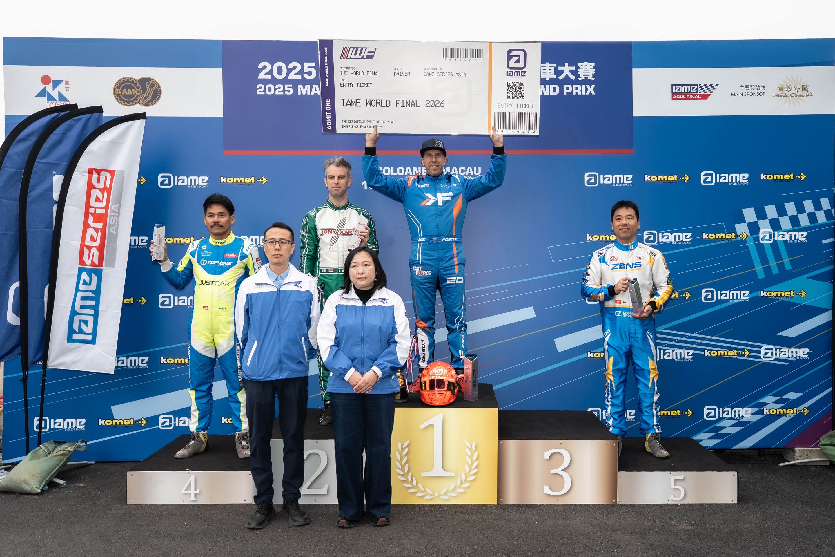 賽事結束後進行頒獎儀式,頒獎嘉賓包括體育局代局長李詩靈、中國-澳門汽車總會會員大會主席鍾國榮、IAME市場總監Marco Moretti、中國-澳門汽車總會理事長何比道、體育局澳門格蘭披治大賽車及大型體育活動廳廳長黃家權。