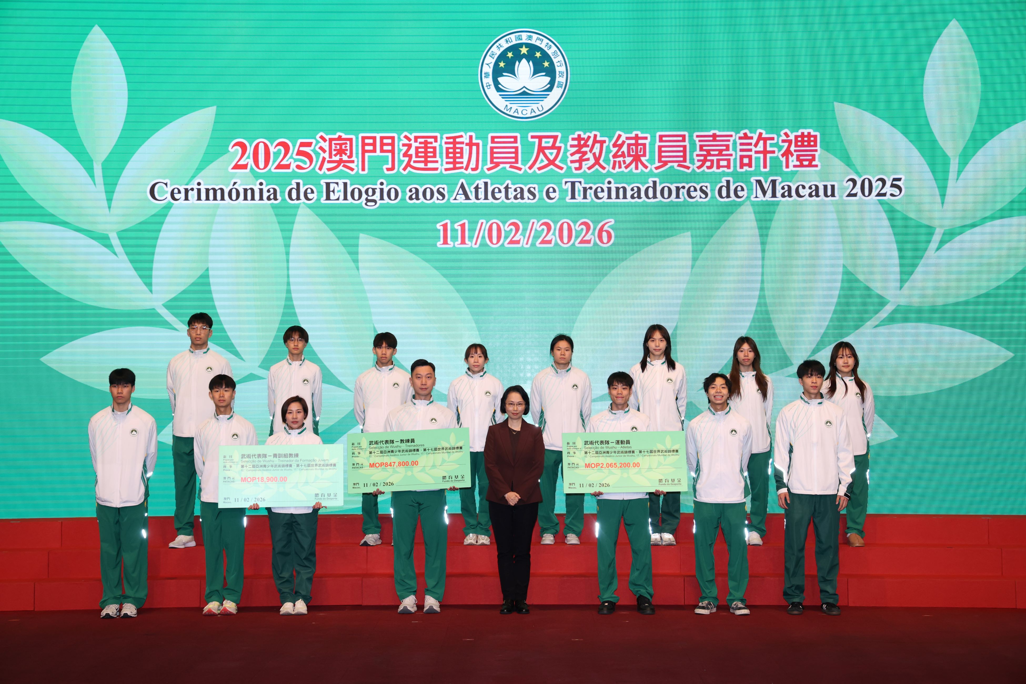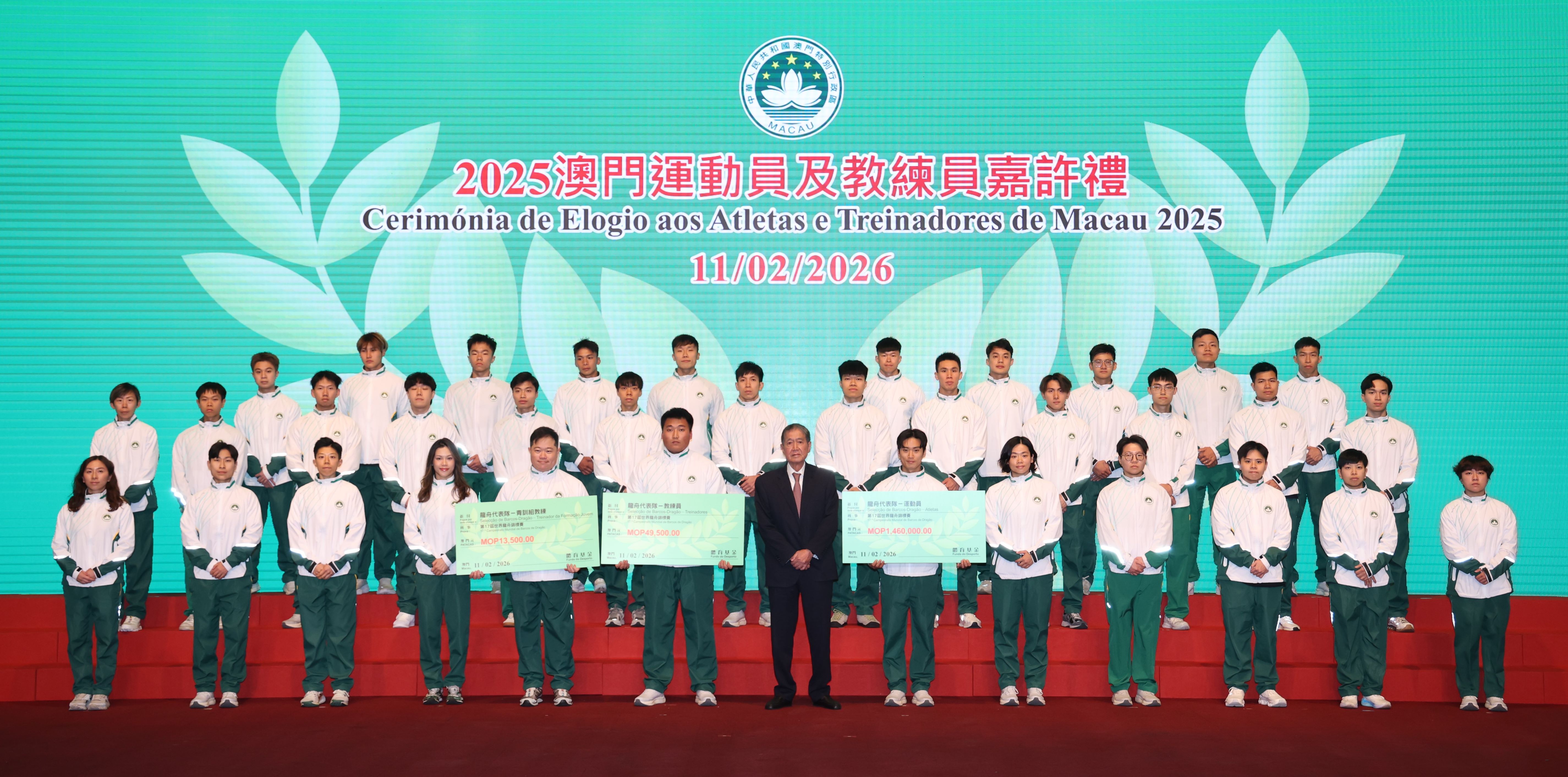 為表彰在2025年度參加體育比賽中獲得優秀成績的本澳運動員、教練員及技術輔助人員,以及為鼓勵澳門體育代表團在今年各項大型體育賽事中創造佳績,「2025澳門運動員及教練員嘉許禮暨2026體育代表團誓師儀式」今(11)日晚上七時半舉行,社會文化司司長柯嵐等出席儀式,勉勵並祝賀一眾運動健兒。