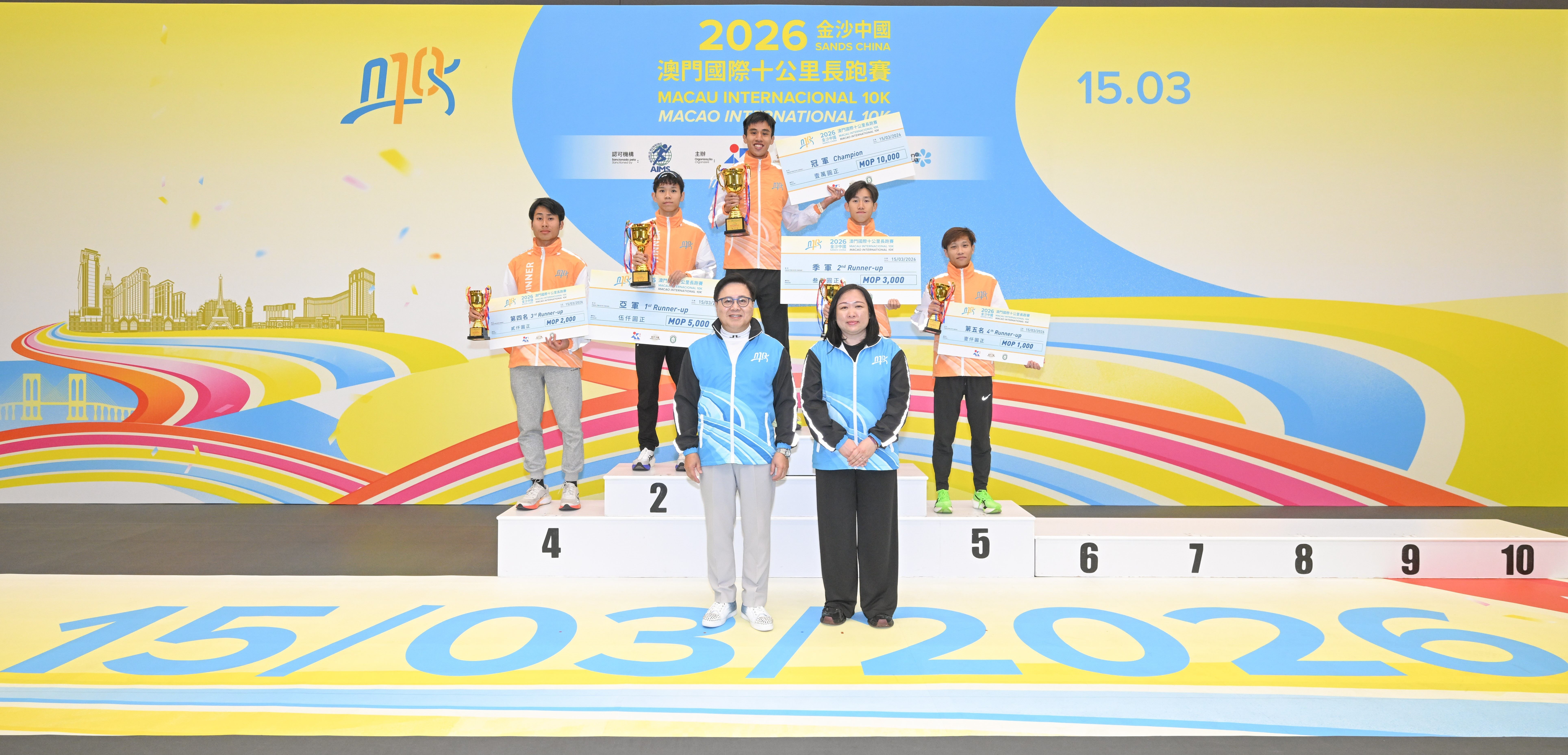 十公里賽澳門優勝者成績方面,男、女子冠軍分別由葉聖陶及許朗奪得,時間為33分20秒及38分49秒。男子組亞、季軍為黃展華及陳言璋,而女子組亞、季軍為周健儀及趙彤彤。