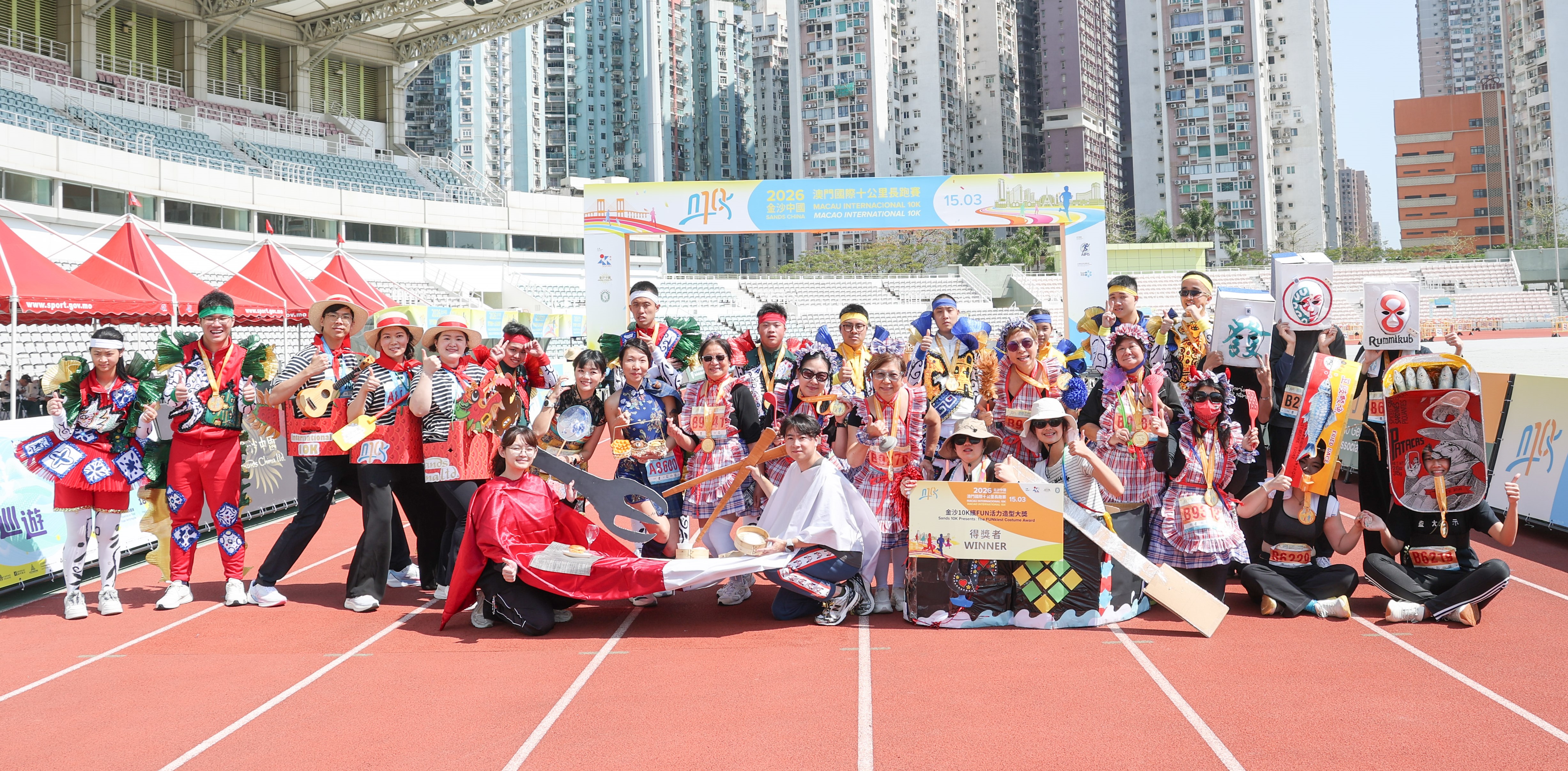 深受參賽者歡迎的「金沙10K繽fun活力造型大獎」活動今年以「中西文化魅力跑」為主題,鼓勵跑手在造型設計融入中西文化元素,藉此彰顯澳門中西文化交匯的獨特魅。活動吸引了眾多參賽者悉心打扮,而獲選的參賽者於賽後在現場獲頒發獎項。