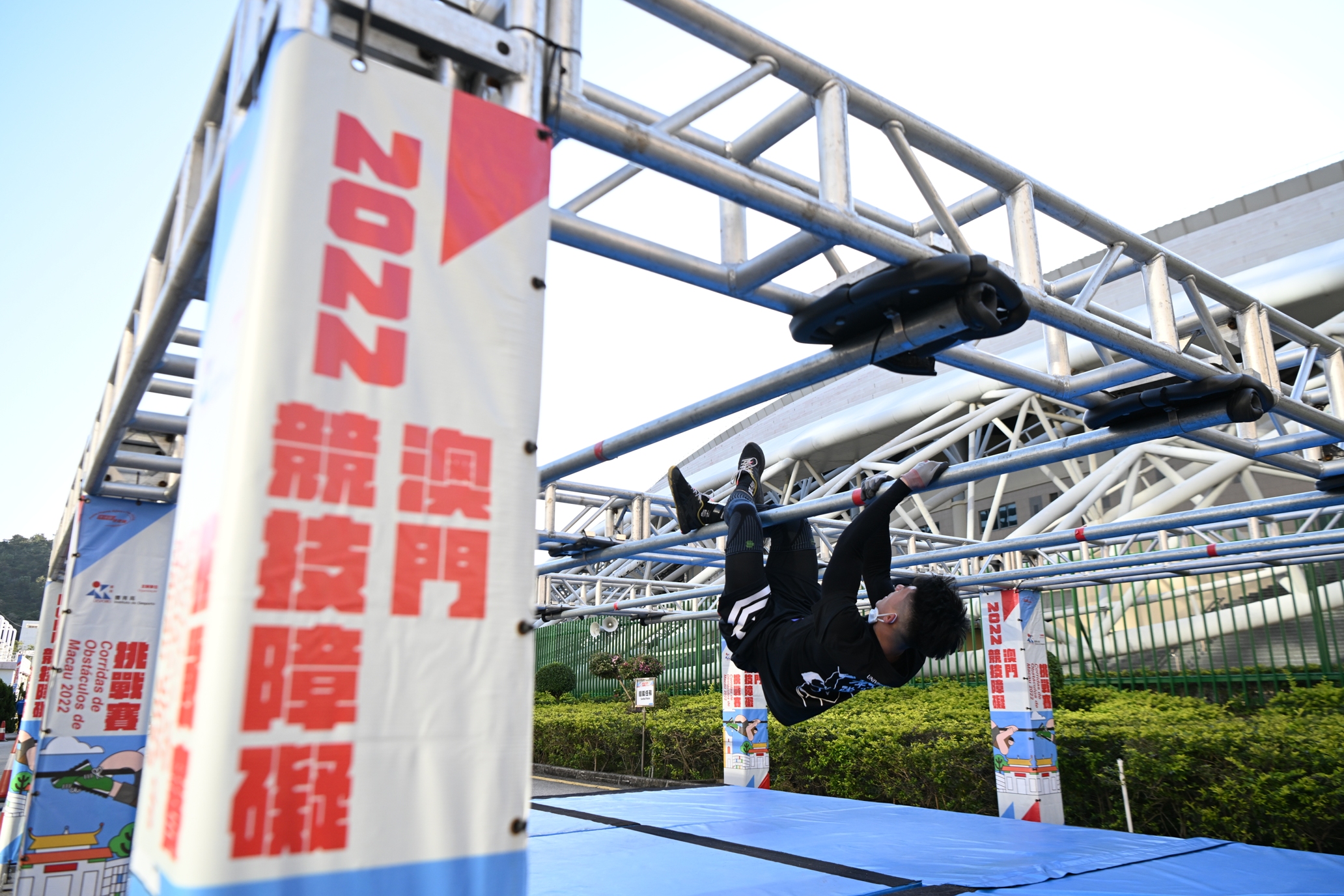 由體育局主辧的“ 2022澳門競技障礙挑戰賽”於今日(18日)在東亞運動會體育館周邊路段圓滿舉行。活動以戶外闖關形式進行,考驗參加者的心肺耐力、肌力和體力,場面熱鬧。