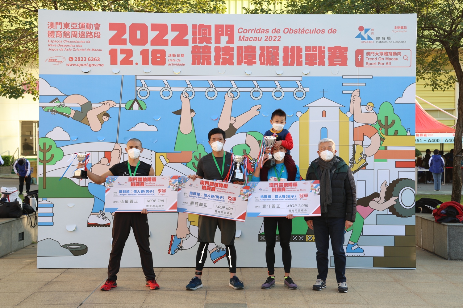 完成賽事的參加者可於12月19日至12月26日期間到體育局網站(www.sport.gov.mo)下載成績證書。有關活動的內容可瀏覽體育局網頁,關注“澳門大眾體育動向”Facebook專頁、“澳門體育”微信公眾號及“澳門特區體育局”微信訂閱號,或致電熱線2823 6363查詢。