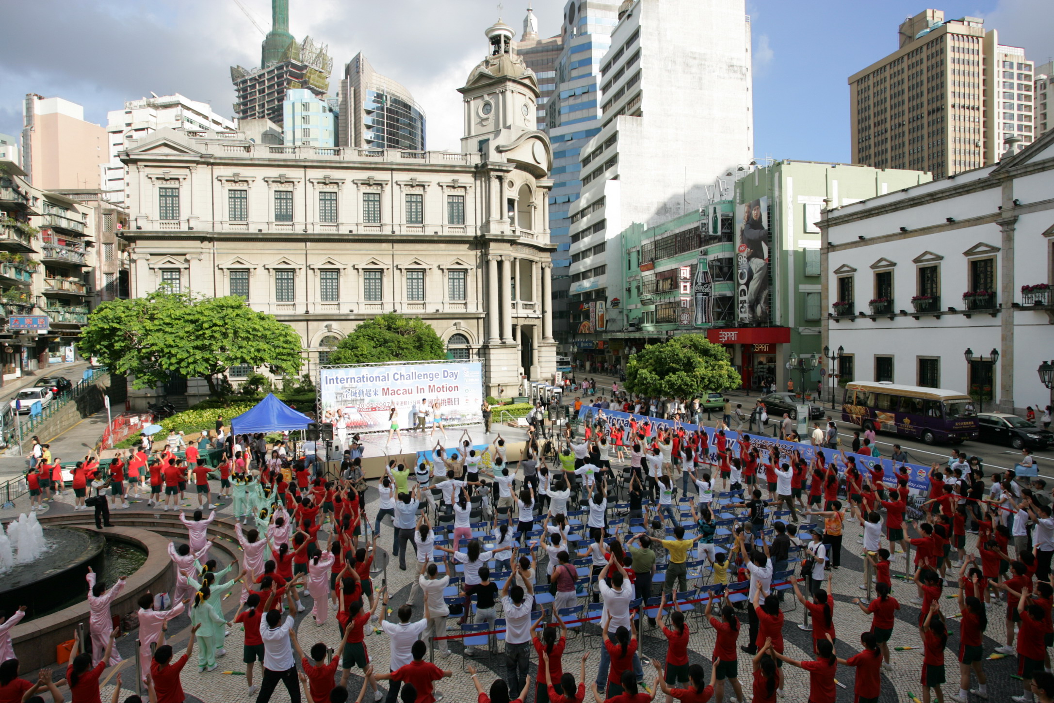 國際挑戰日活動已是連續第7年舉辦,經國際大眾體育聯會抽籤決定澳門之對賽城市是克羅地亞的薩格勒布巿。昨日的活動,除得到各大機構及政府部門的積極配合,於上午7時至晚上9時不同時段內在辦公室進行了15分鐘的工作間保健操,以響應活動外,在各學校、社團、市民亦紛紛進行各種形式的體育及康樂活動以示支持。同時,主辦單位亦分別在祐漢街巿公園及議事亭前地進行了2場助興活動,場面熱鬧,參與活動的市民包括了不同年齡階層的人士。現場並為市民進行免費體質監測活動,參與市民踴躍。
