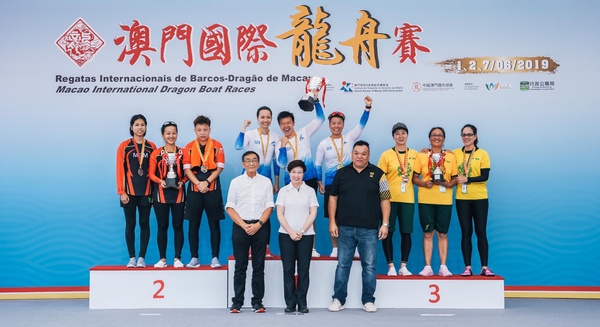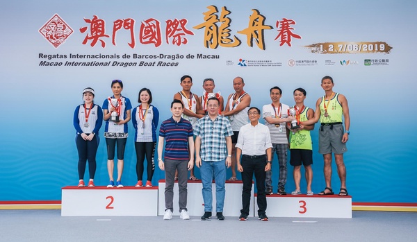 由體育局及中國澳門龍舟總會主辦,市政署及行政公職局協辦的“2019澳門國際龍舟賽”,今日(2日)在南灣湖水上活動中心進行第二日賽事。經過一番激烈角逐之後,澳博金禧在澳門標準龍500米公開組力壓多隊奪冠,而澳門標準龍500米女子組的冠軍則由澳門青少年發展協會奪得,公職人員小龍200米邀請賽由香港康樂及文化事務署稱王。