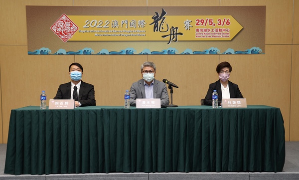 由體育局及中國澳門龍舟總會主辦,市政署及行政公職局協辦的“2022澳門國際龍舟賽”活動,將於本年5月29日及6月3日在南灣湖水上活動中心舉行。賽事組委會今日(16日)舉行新聞發佈會,介紹活動詳情。出席新聞發佈會的嘉賓包括體育局局長潘永權、中國澳門龍舟總會會長賴百齡及體育局副局長林蓮嬌。