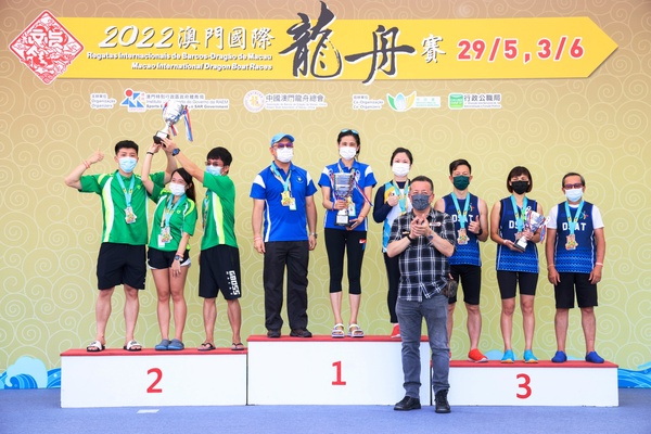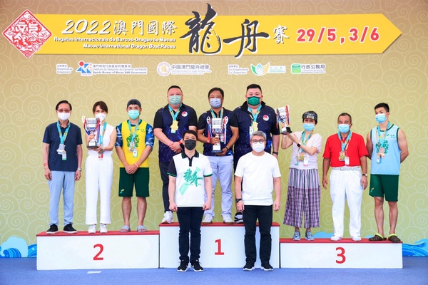 出席賽事的頒獎嘉賓有體育局局長潘永權、中國澳門龍舟總會會長賴百齡、市政署市政管理委員會主席戴祖義、體育局副局長劉楚遠、林蓮嬌及中國澳門龍舟總會理事長黃家豪。