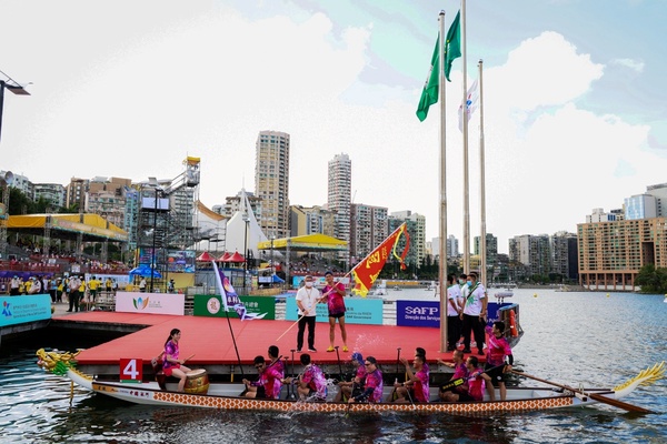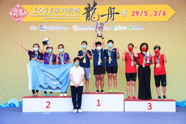 由體育局及中國澳門龍舟總會主辦,市政署及行政公職局協辦的“2022澳門國際龍舟賽”,今日(29日)在南灣湖水上活動中心上演,進行了多組小龍賽的賽事,經過一番激烈角逐之後,卓科數碼系統通訊有限公司在澳門小龍賽公開組(200米)力壓多隊奪冠。6月3日端午節正日,將舉行澳門龍舟賽標準龍(500米)公開組及女子組賽事。