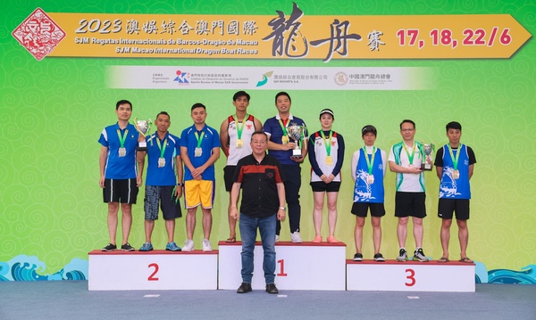 “2023澳娛綜合澳門國際龍舟賽” 首日進行了多組200米賽事,分別澳門小龍賽公開組、澳門小龍賽女子組、澳門政府部門小龍賽及澳門大學生小龍賽公開組。賽事上午因雷暴警告而暫停至下午3時,經過角逐後,矚目的公開組賽事,消防局以46秒795率先衝線,亞軍為澳娛綜合金禧-A,季軍為澳娛綜合金禧-B。女子組方面,澳門青少年發展協會-A以56秒035封后,亞軍為澳門青少年發展協會-B及季軍澳娛綜合蓮花-A。