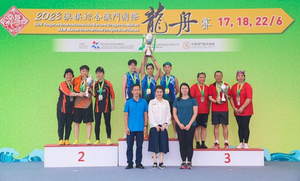 由體育局、澳娛綜合度假股份有限公司及中國澳門龍舟總會主辦,市政署及行政公職局協辦的“2023澳娛綜合澳門國際龍舟賽”,今日(18日)在南灣湖水上活動中心上演標準龍公開組及女子組賽事。經過連場競逐後,消防局及澳門青少年發展協會分別繼小龍賽公開組、女子組奪冠後,再奪標準龍公開組及女子組冠軍,而6月22日端午節正日將進行多場精彩賽事,包括邀請賽標準龍公開組、女子組及大學生500米的賽事。