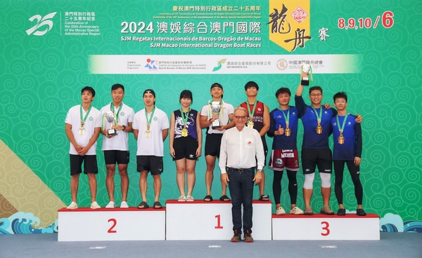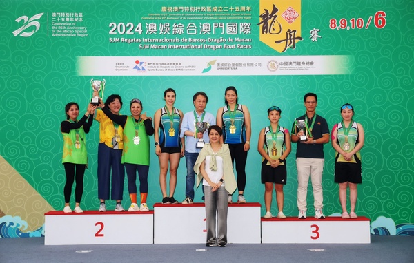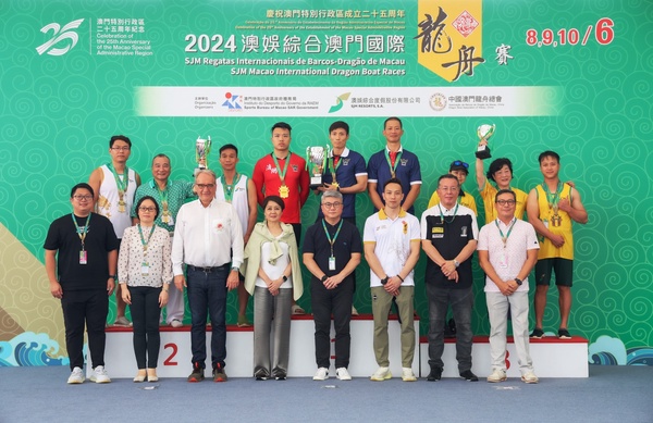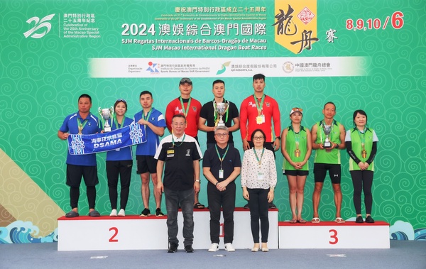 由體育局、澳娛綜合度假股份有限公司及中國澳門龍舟總會主辦,市政署及行政公職局協辦的“慶祝澳門特別行政區成立25周年—2024澳娛綜合澳門國際龍舟賽”,今(8)日在南灣湖水上活動中心舉行首日賽事,公開組賽事,經一輪角逐後,消防局奪得澳門小龍賽公開組(200米)冠軍,而女子組后冠則由澳門青少年發展協會-A奪得。明(9)日將舉行澳門龍舟賽標準龍(500米)公開組及女子組賽事。